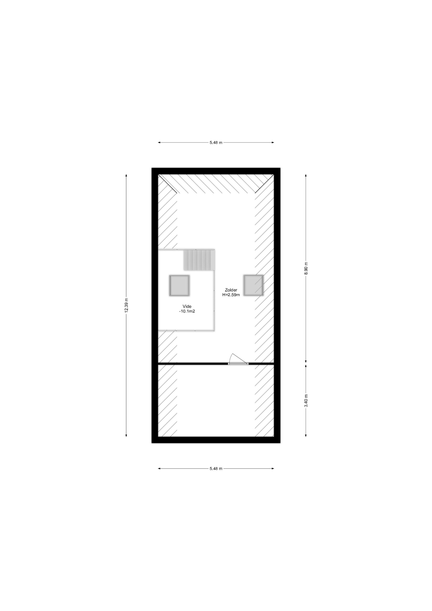 Door middel van 2 grote kantelramen op deze verdieping valt er een zee van licht op de vide van de 1everdieping.