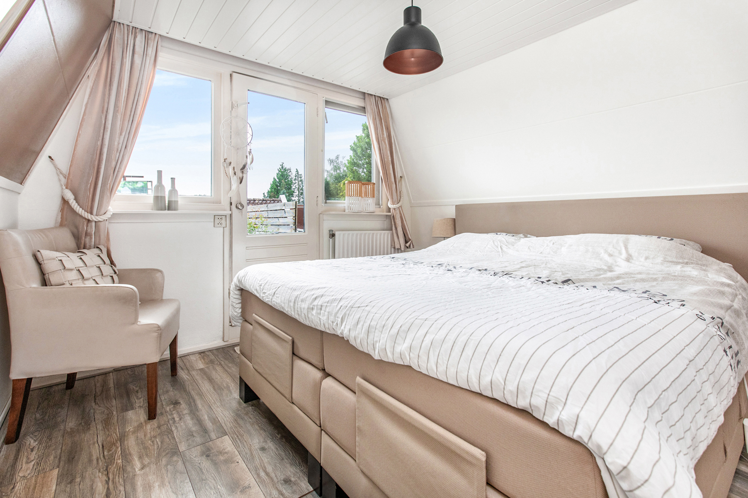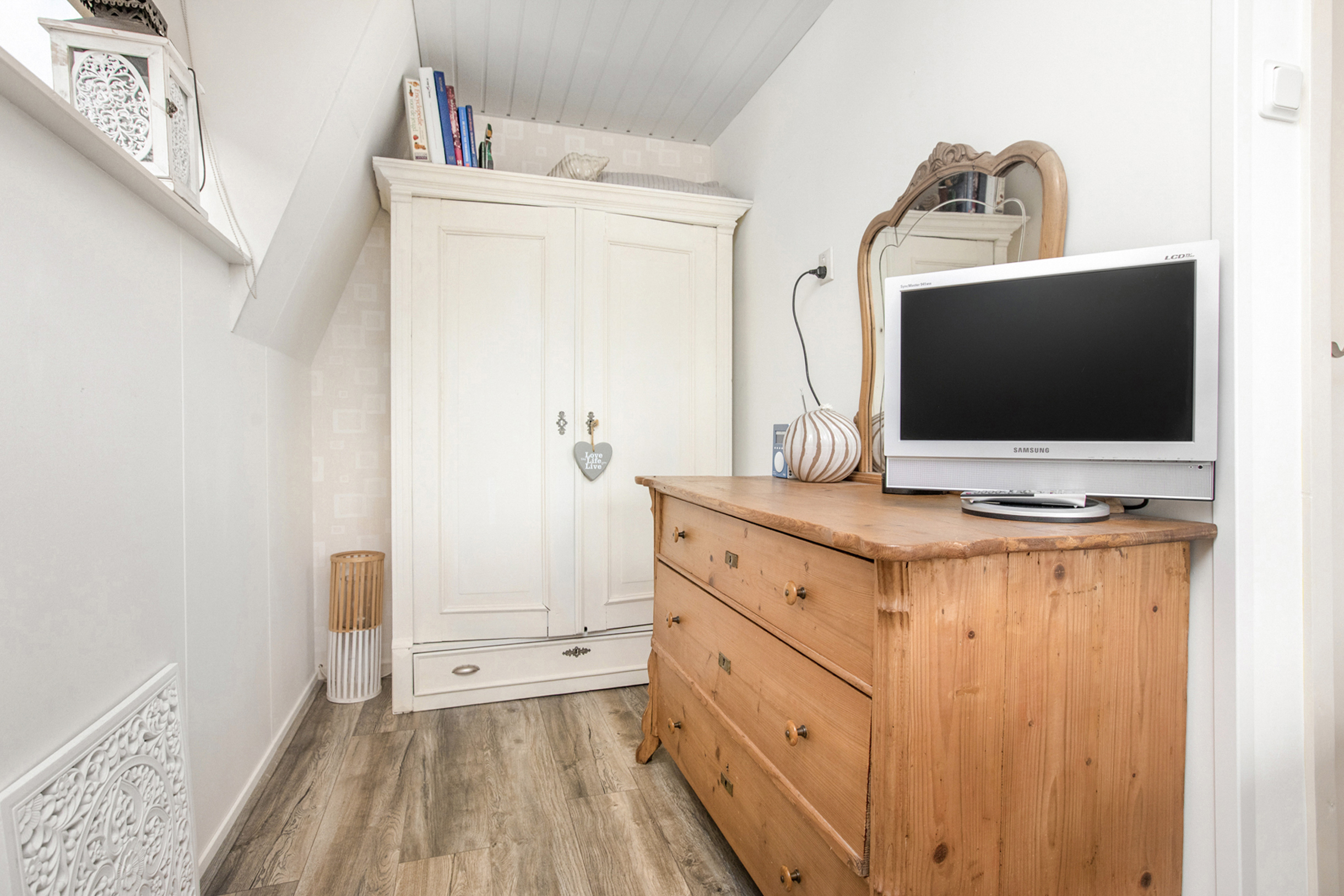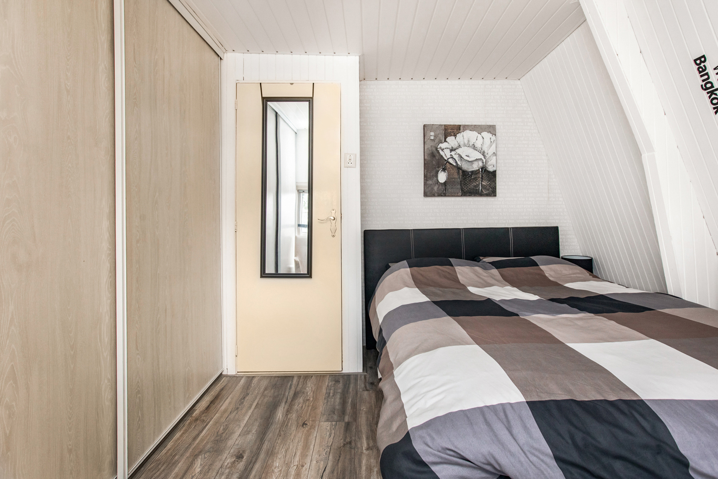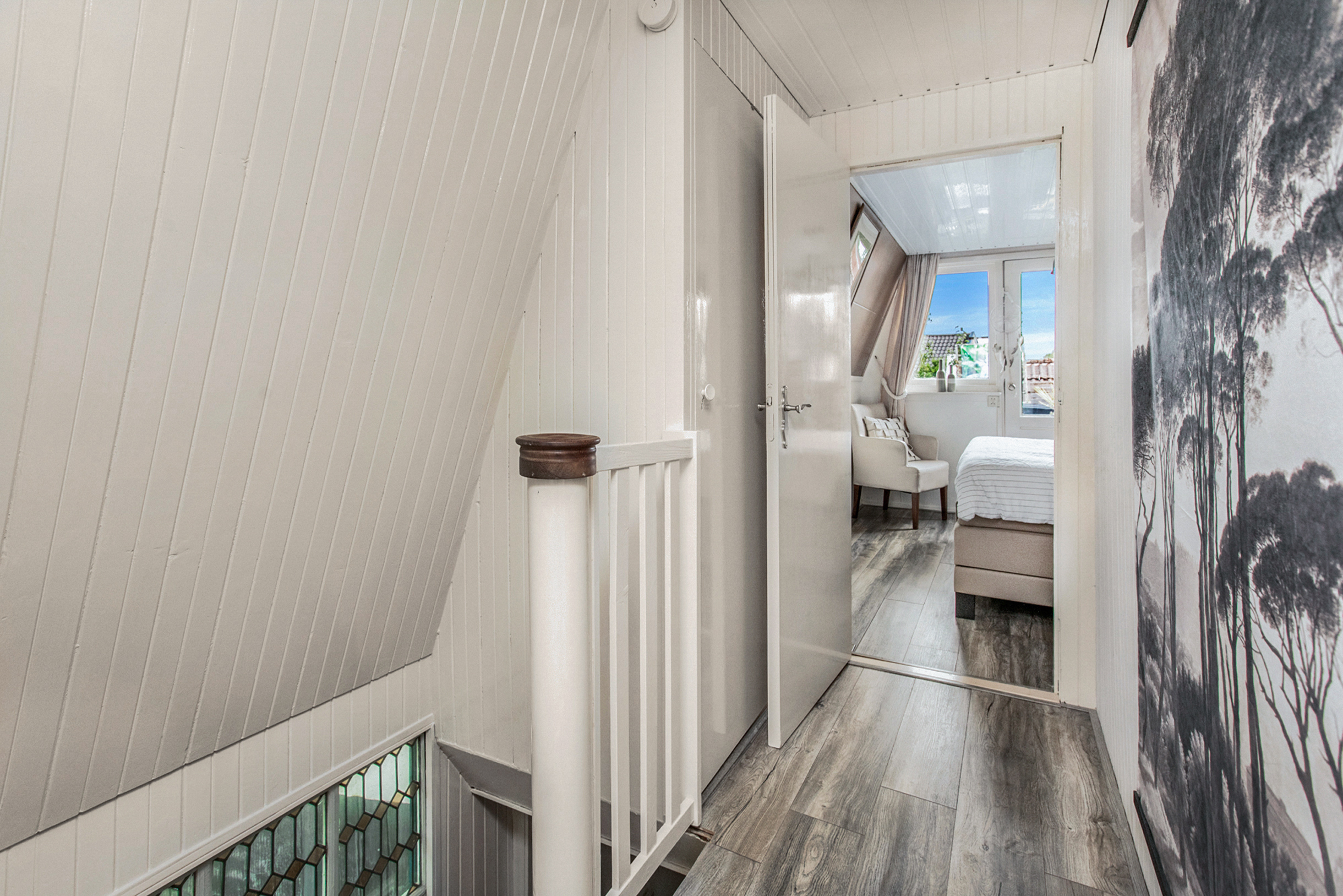 Overloop met een vaste kast en toegang tot 2 ruime slaapkamers. Een slaapkamer aan de voorzijde met een vaste kastenwand en een slaapkamer aan de achterzijde met toegang tot het dakterras.