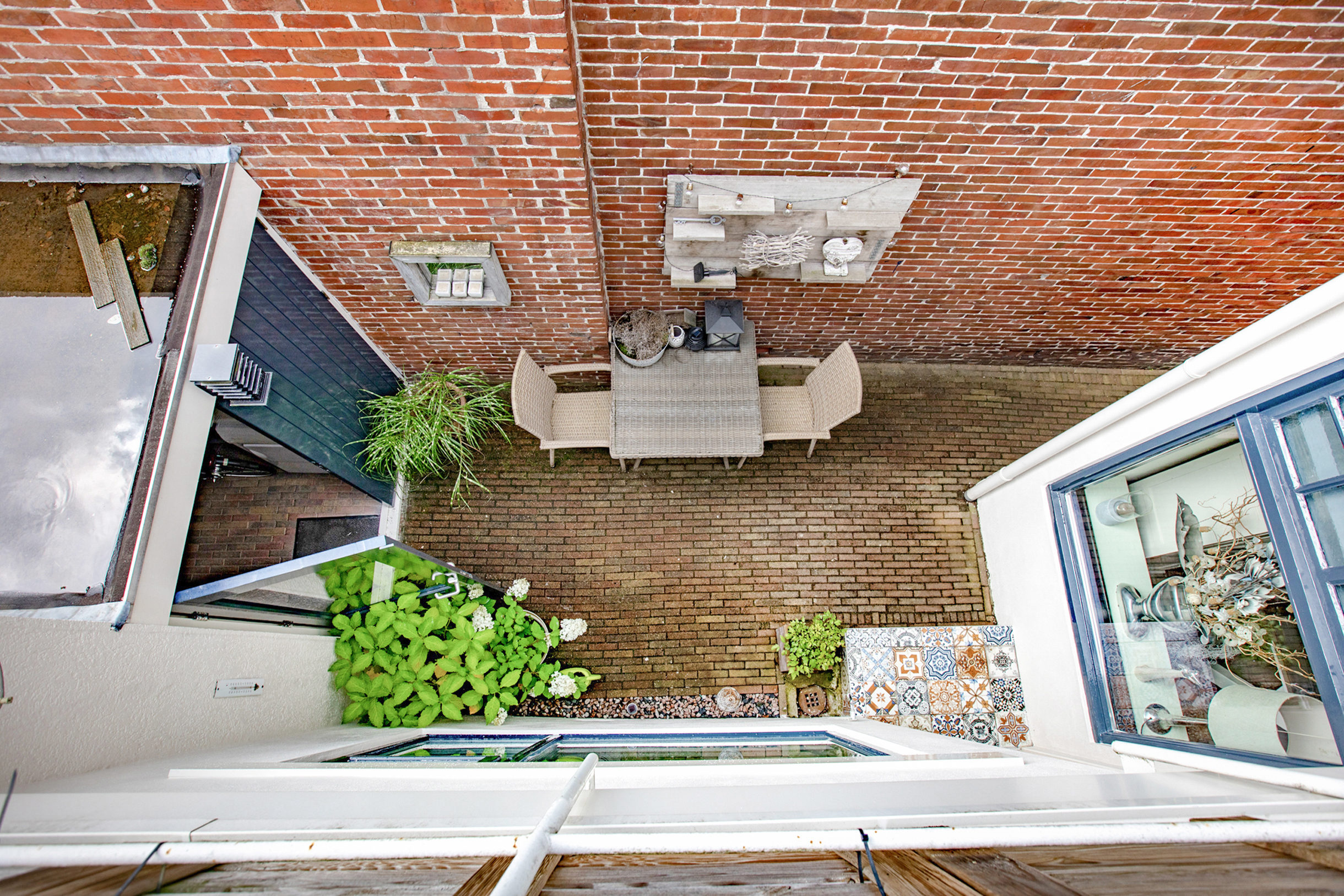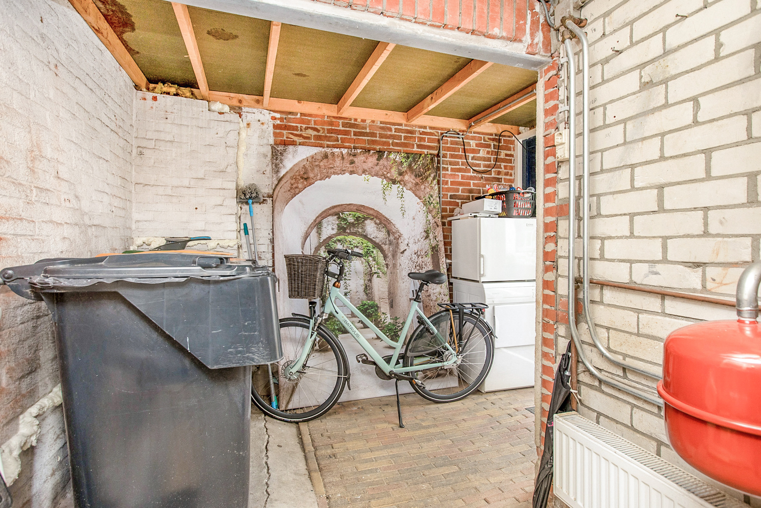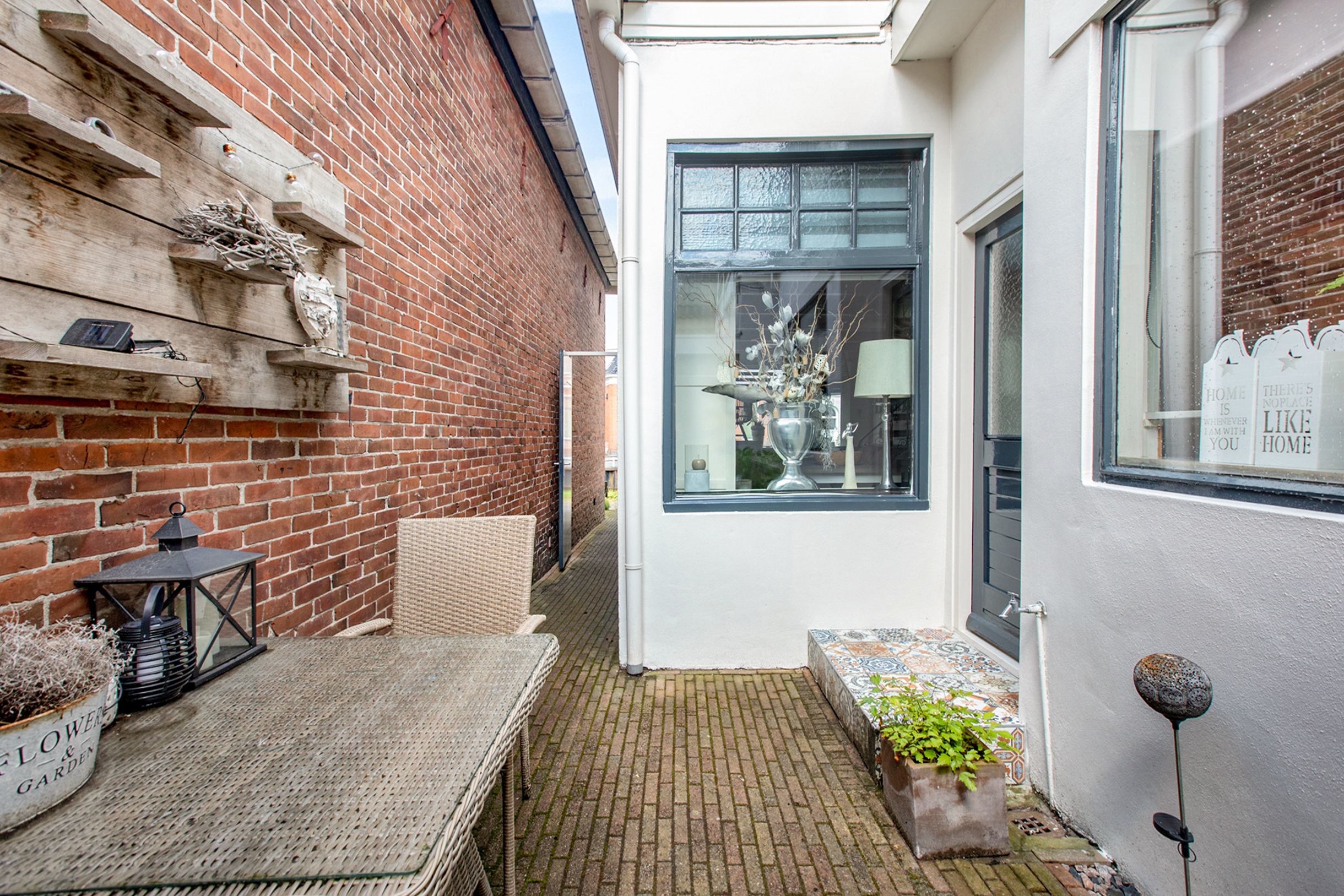 De knusse, ingebouwde achtertuin geeft toegang tot de achtergelegen berging. In de berging bevindt zich de opstelling CV-ketel en zijn er aansluitingen voor witgoedapparatuur.