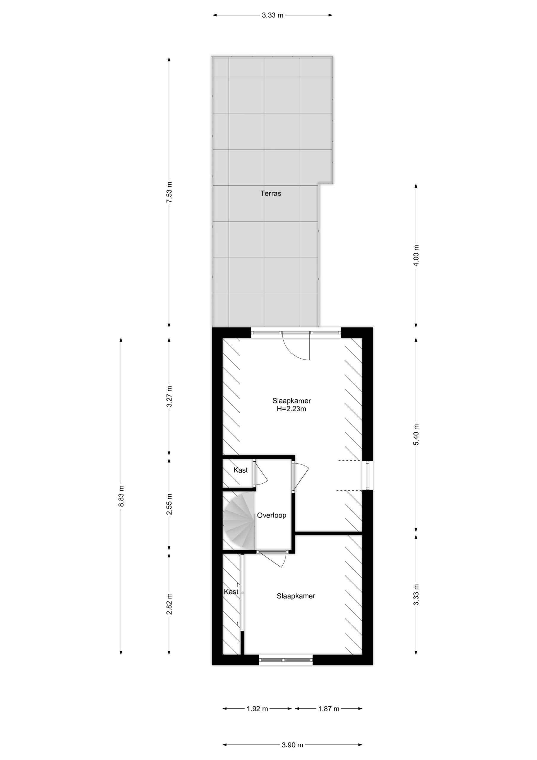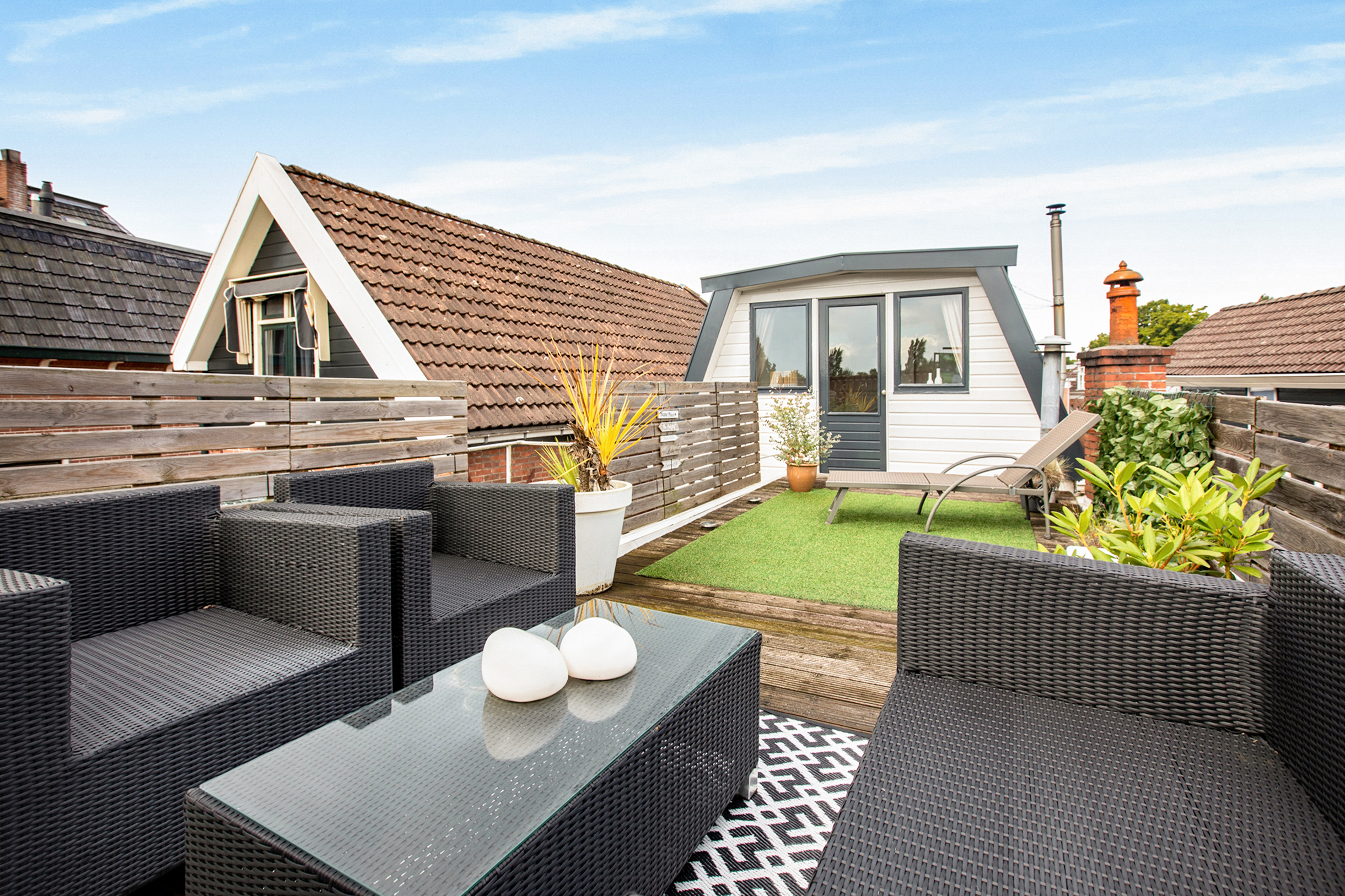 Het zonnige dakterras is gelegen op het zuidwesten en heeft een oppervlakte van ca. 23 m². Voldoende ruimte en privacy om zomers te genieten van het zonnetje!