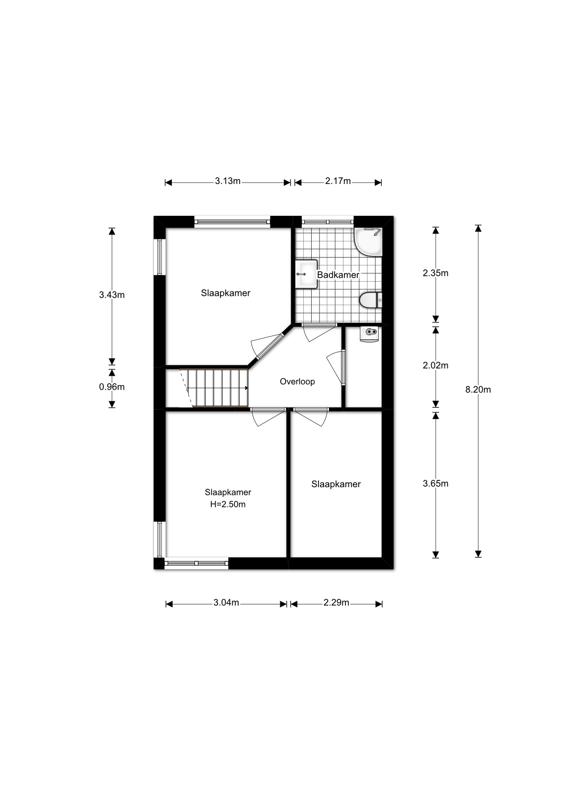 1e verdieping: Overloop, 3 slaapkamers, De slaapkamers aan de voorzijde zijn 11 m² en 8 m². Aan de achterzijde is de slaapkamers ook 11 m². Badkamer voorzien van douche, toilet en badkamermeubel met wastafel.