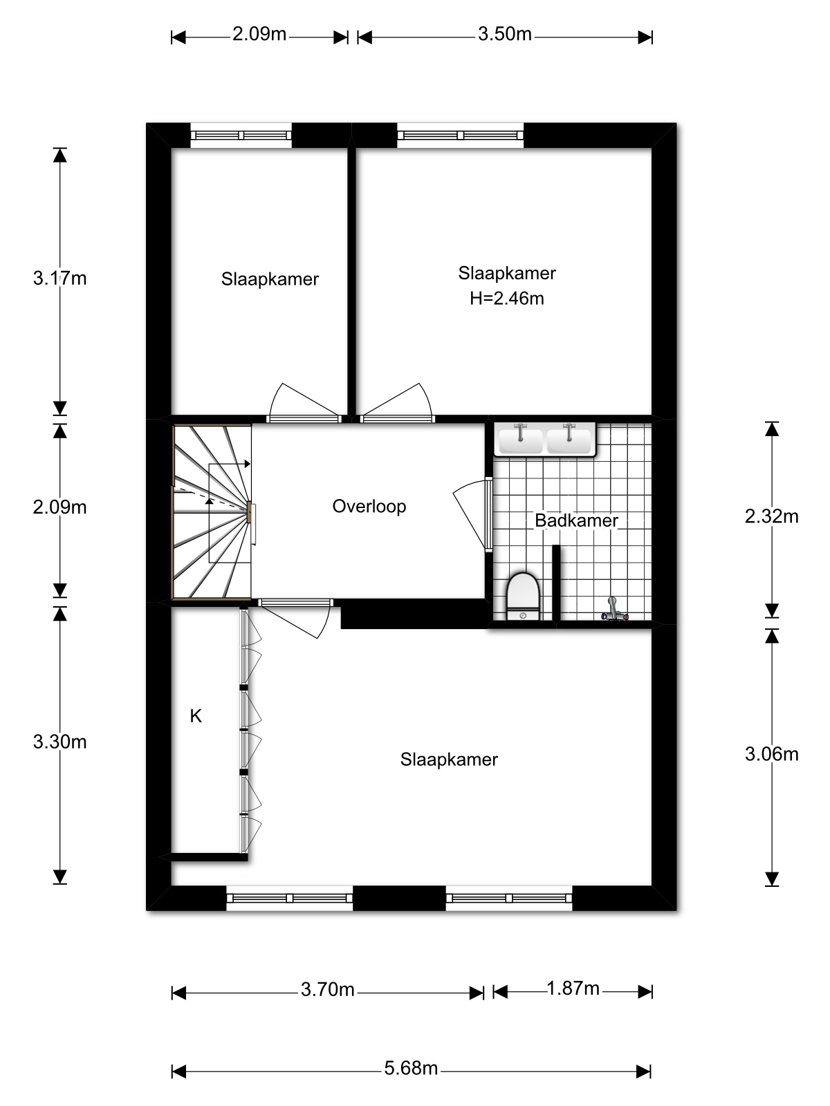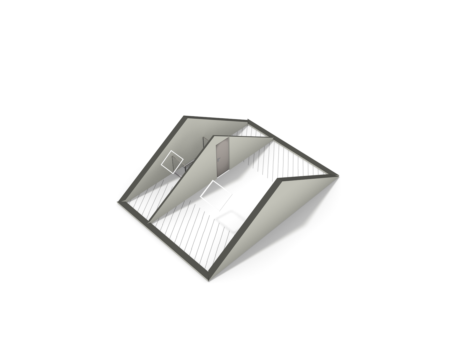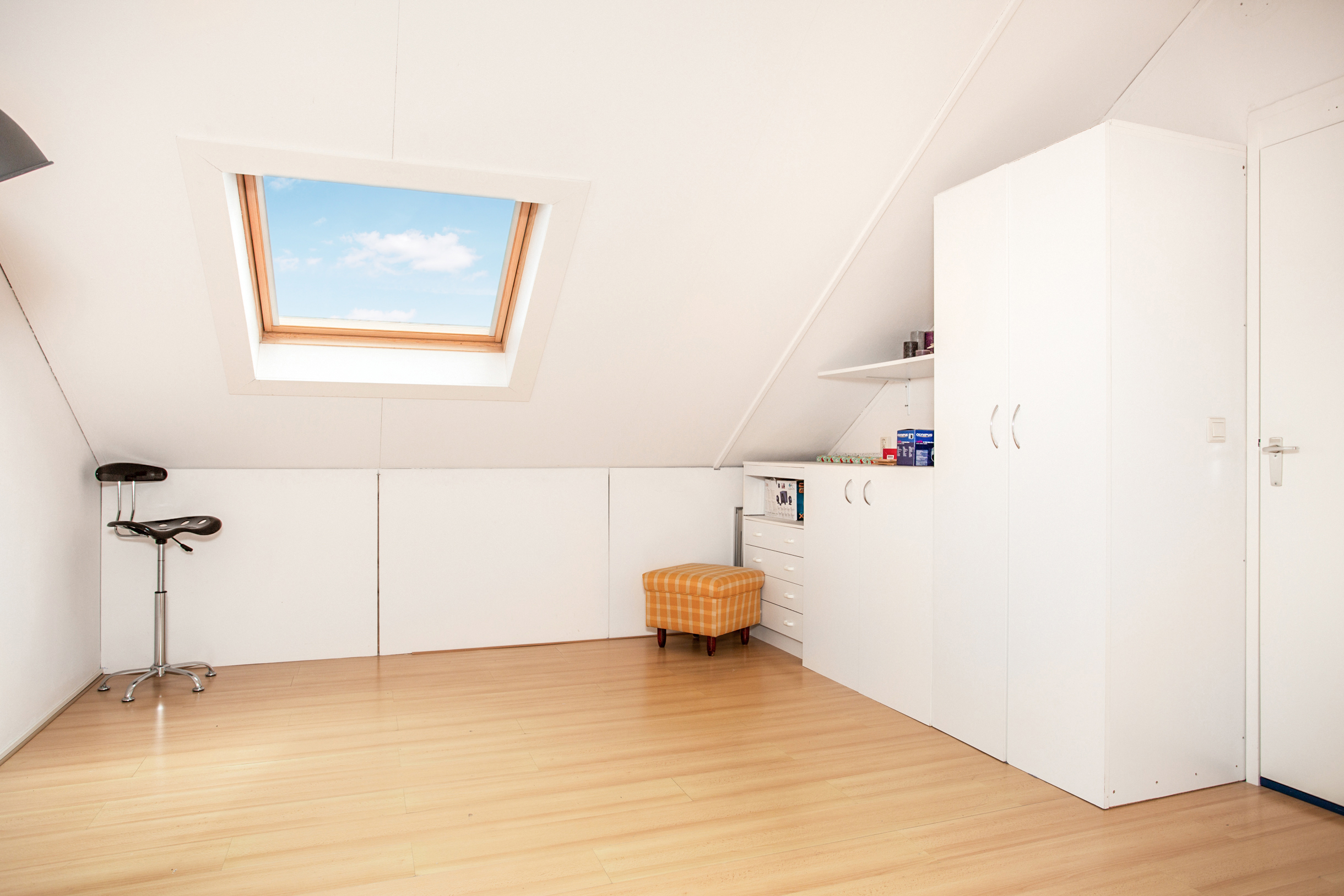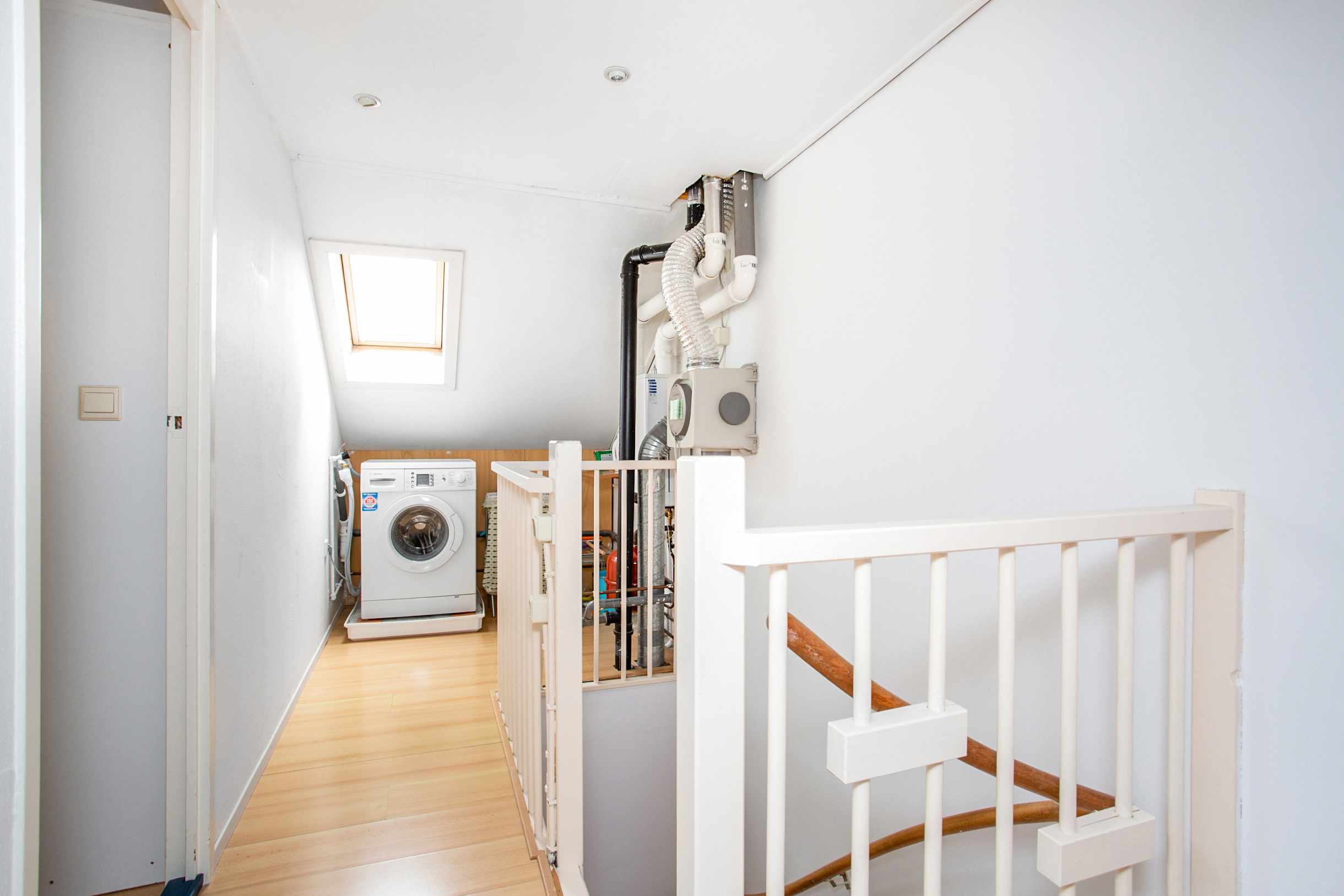 Overloop met opstelplaats voor het witgoed en de CV-ketel, ruime slaapkamer (ca. 15 m²) met dakraam