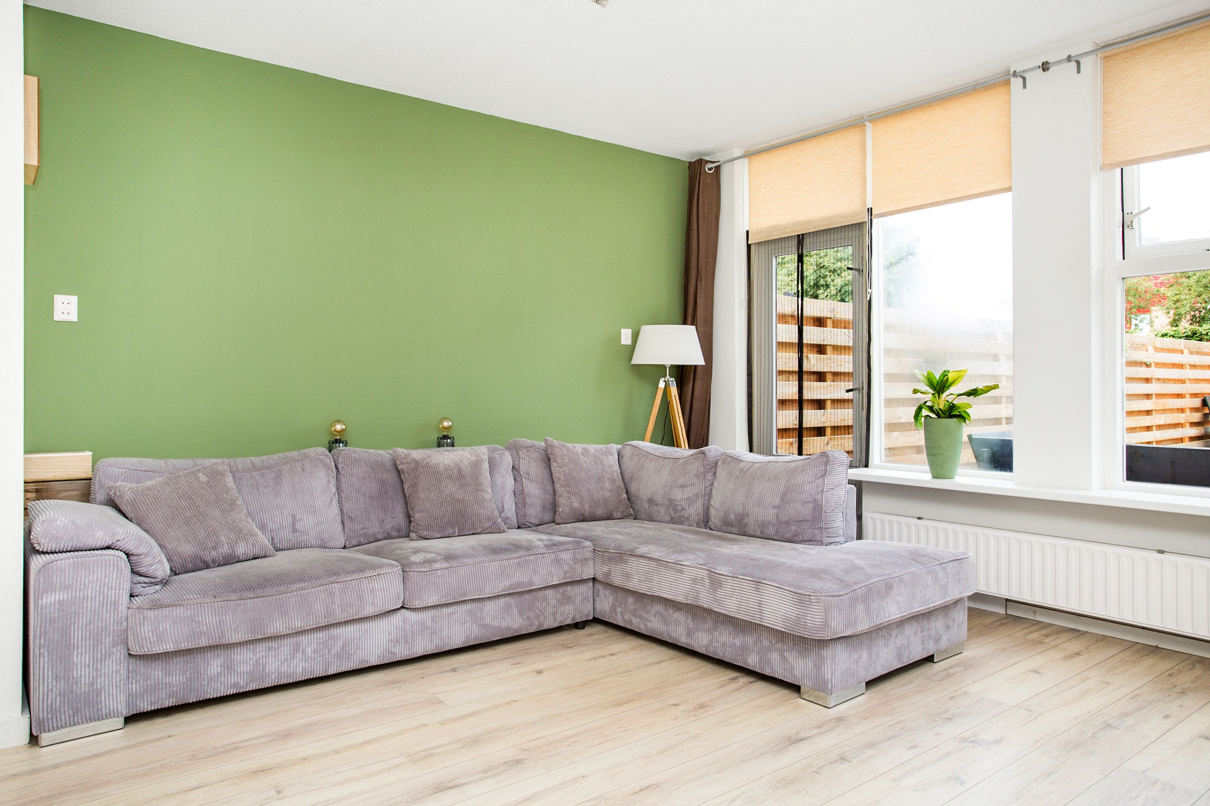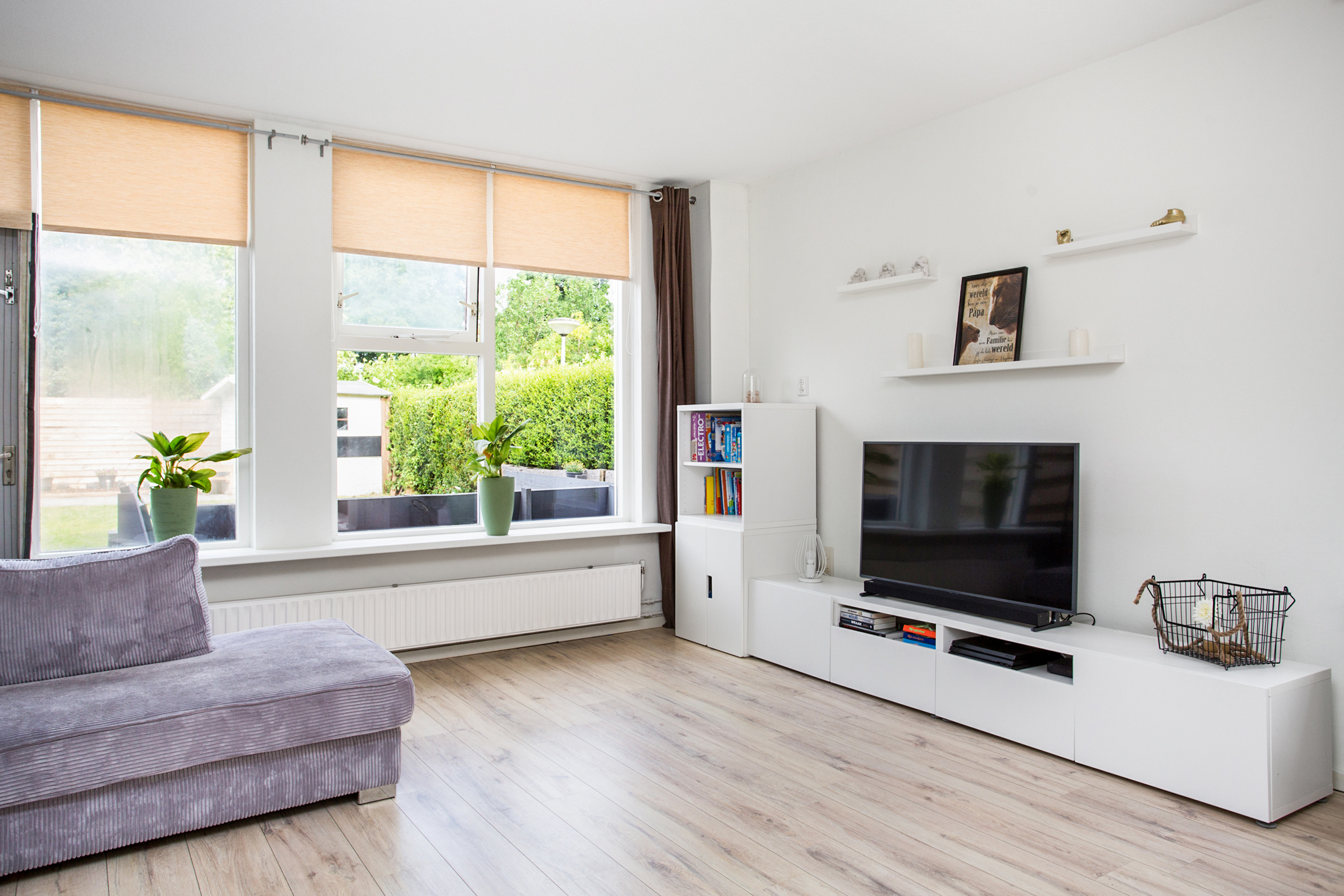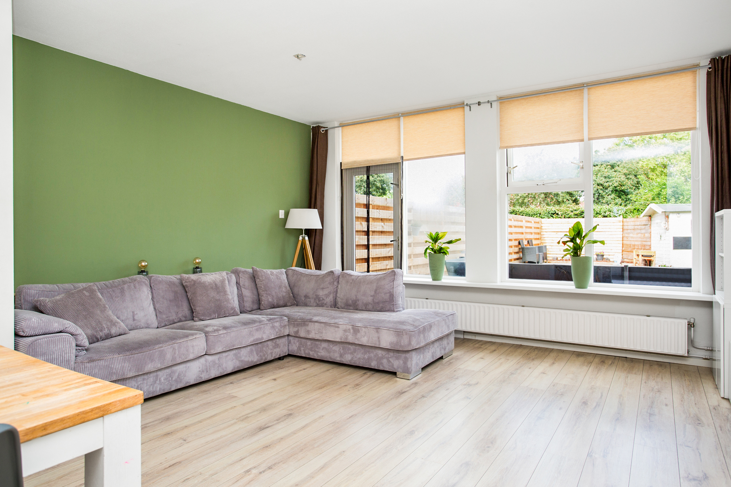 tuingerichte woonkamer met toegang naar de zonnige achtertuin en een praktische
