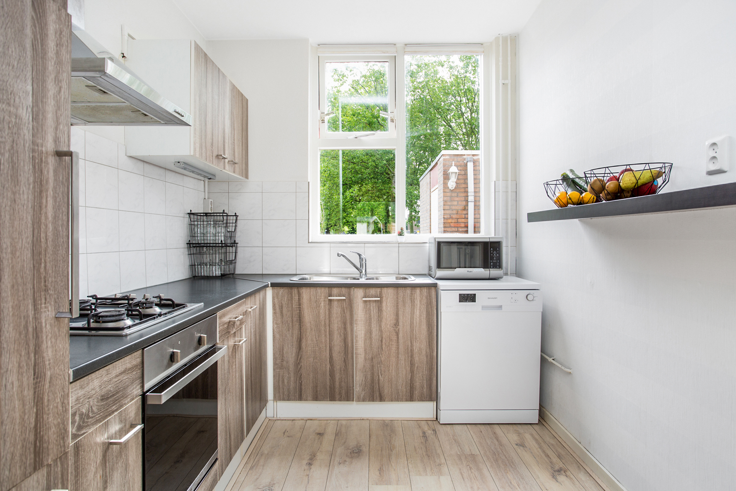 oven en daarnaast een losstaande vaatwasser.