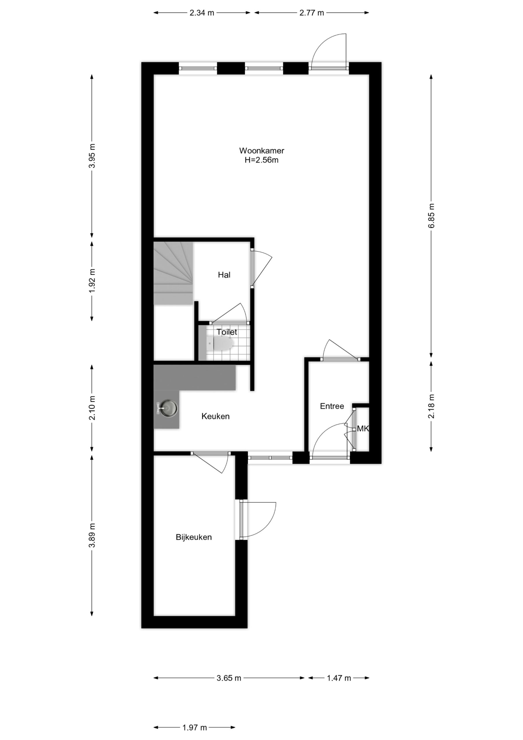 Geheel voorzien van kunststof kozijnen met dubbel glas;