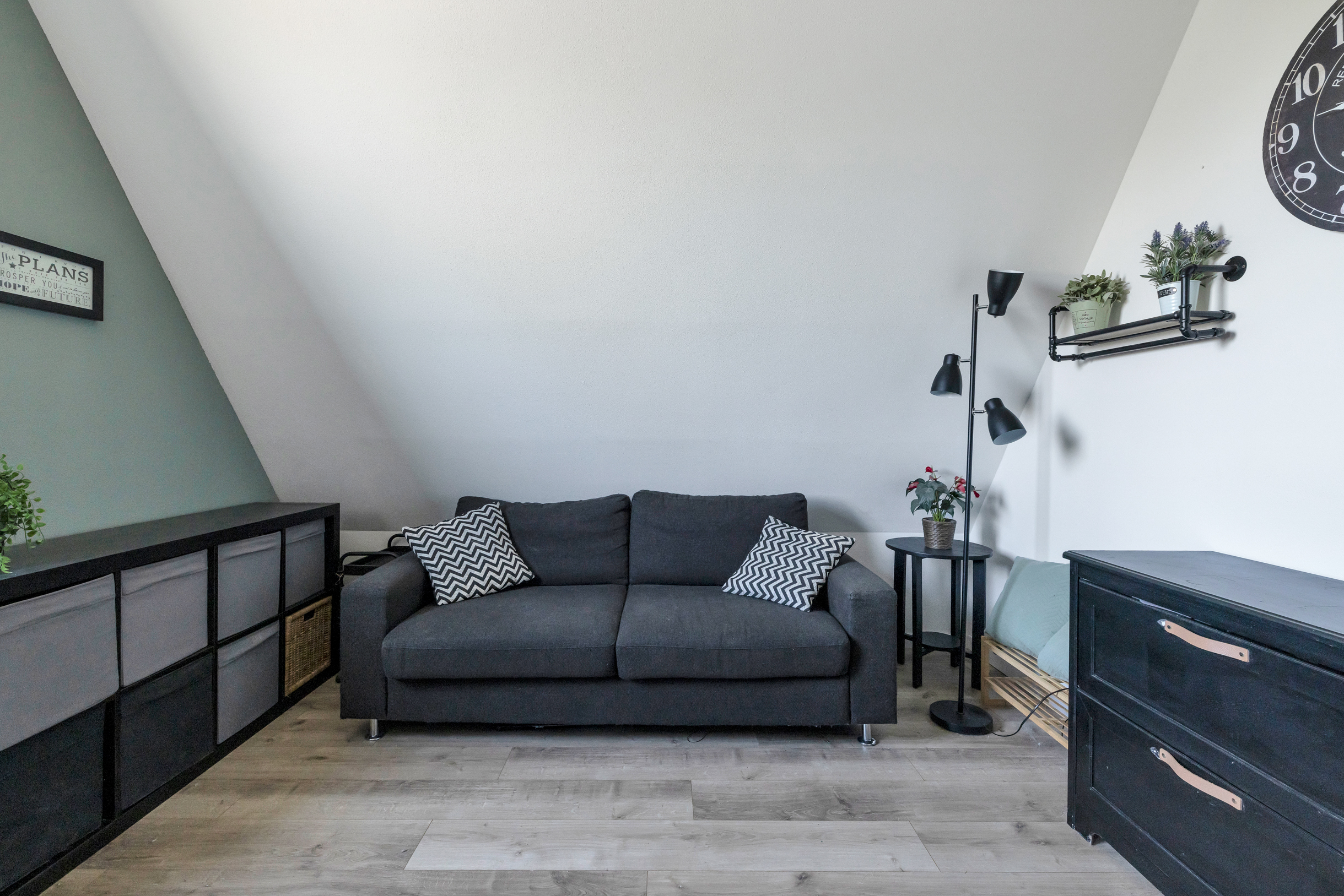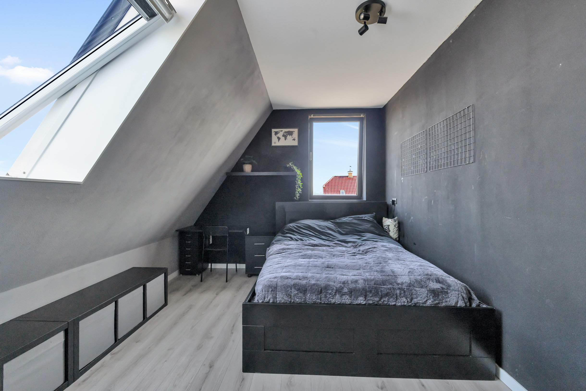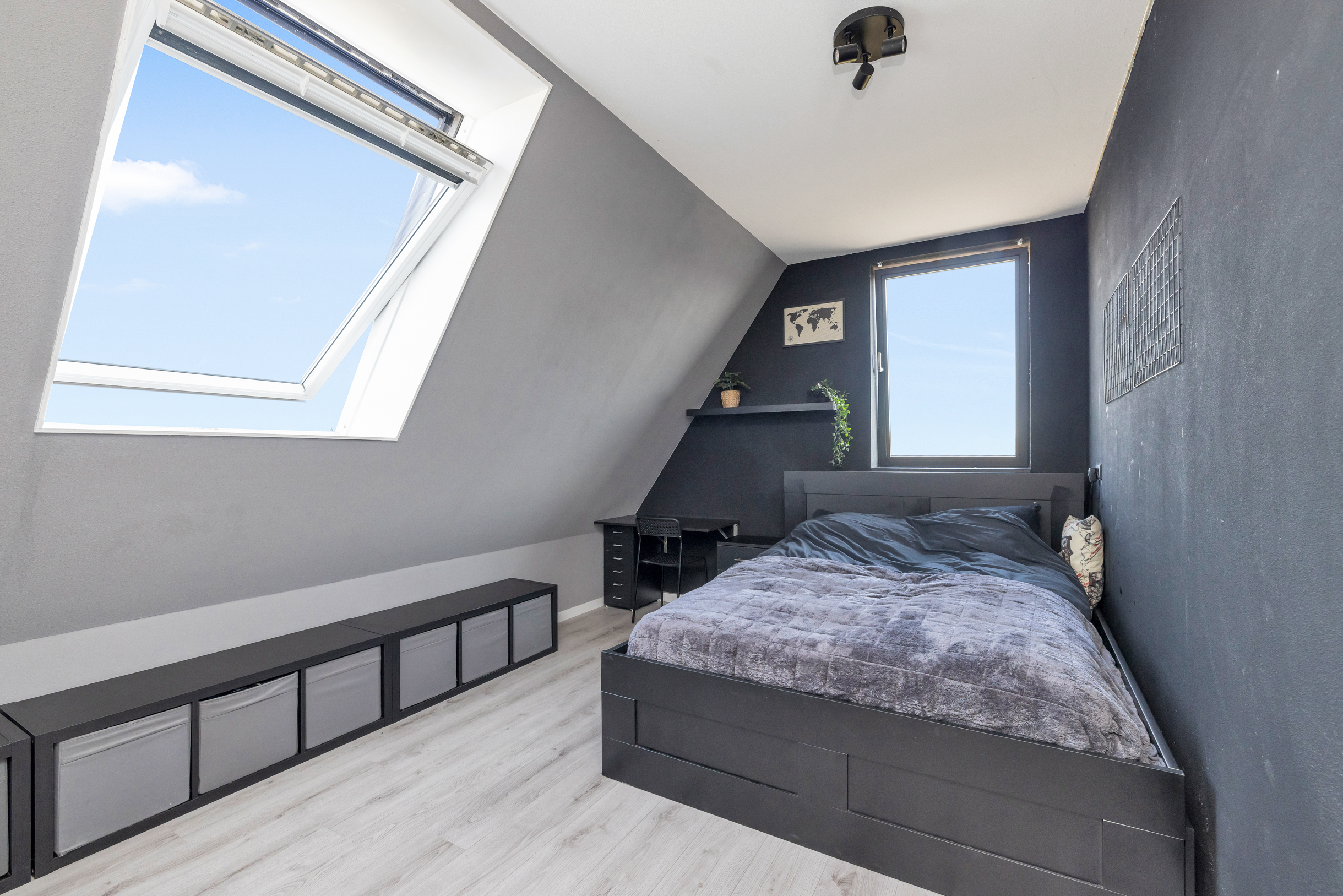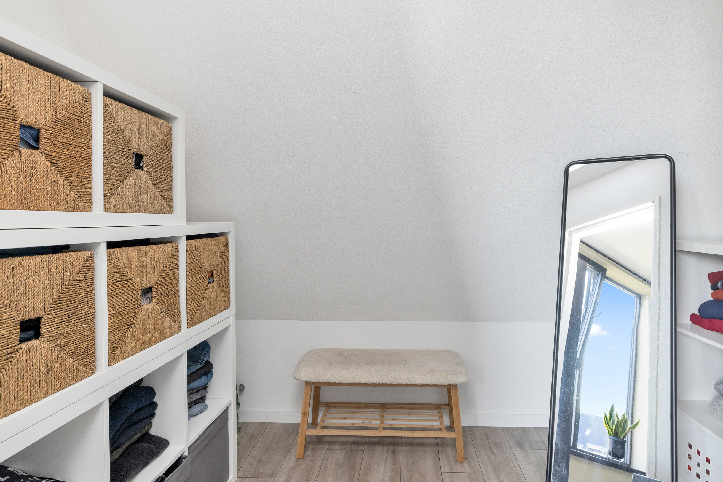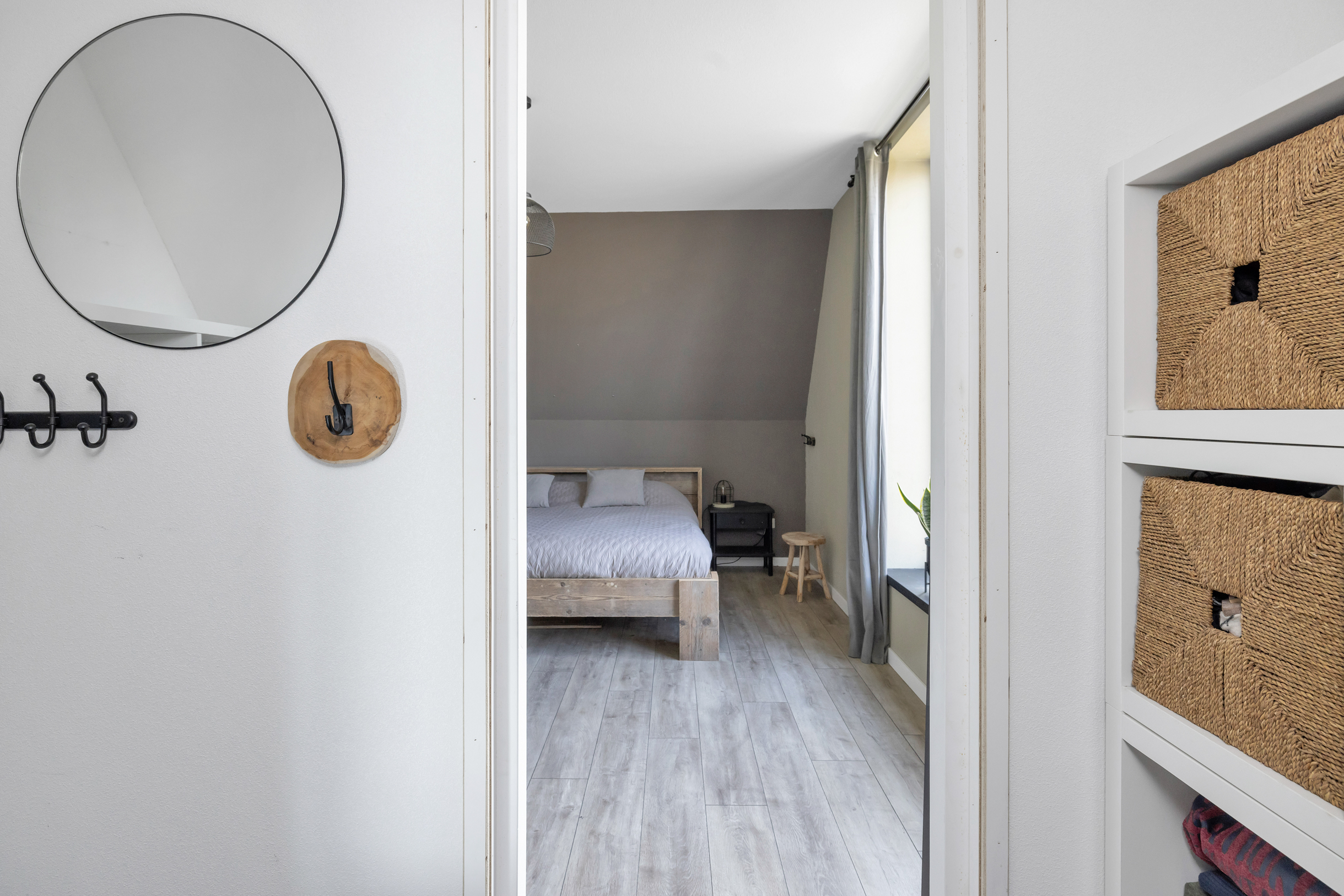 Via een vlizotrap bereik je de ruime vliering – ideaal voor extra opslag.