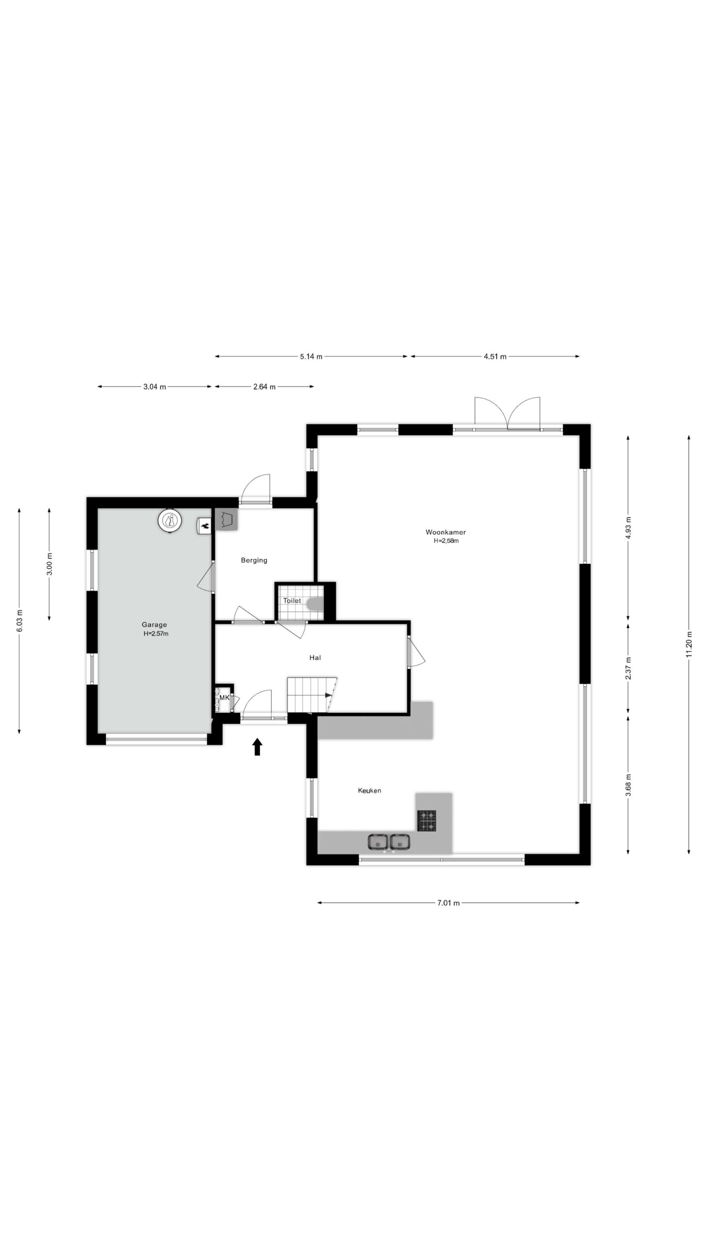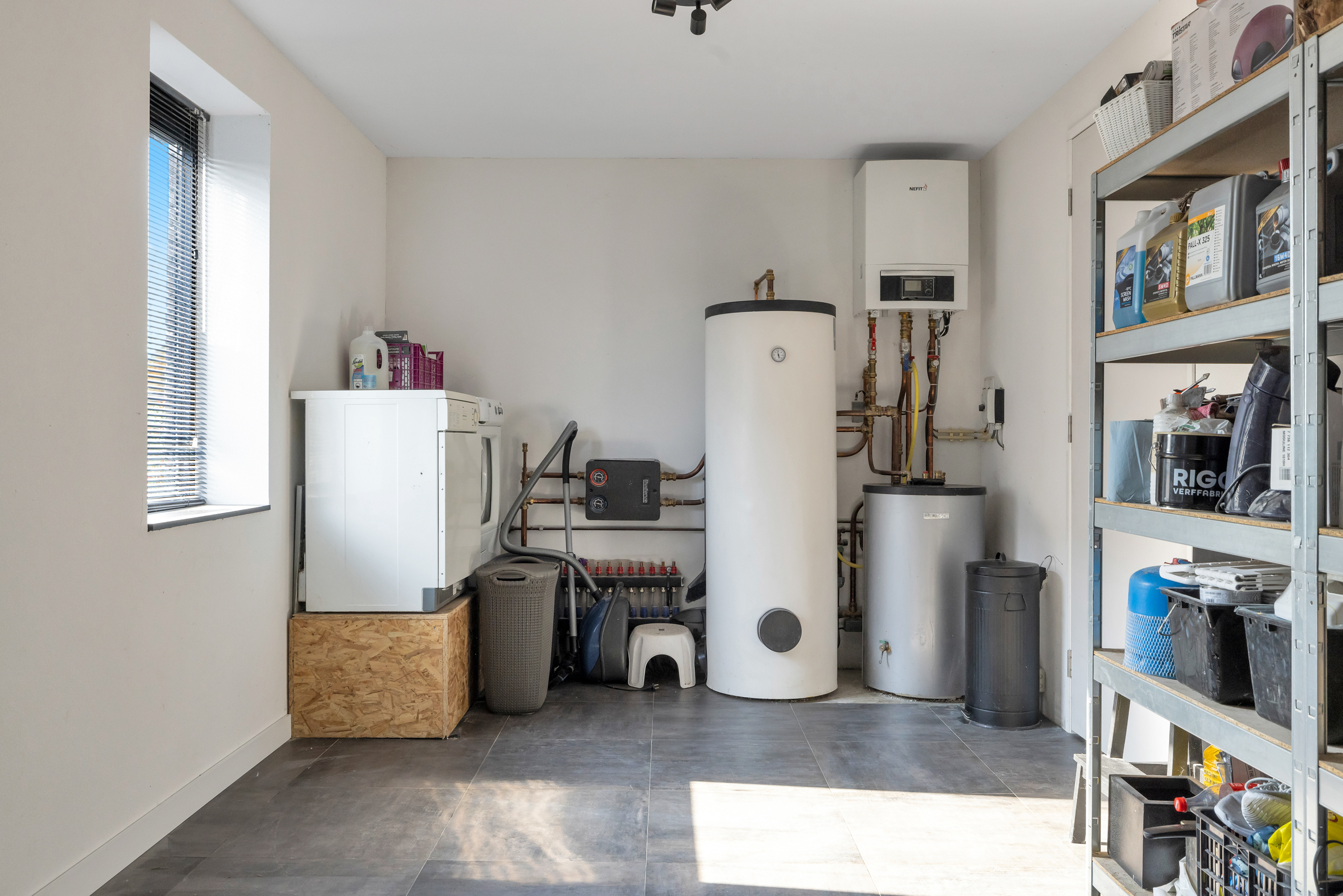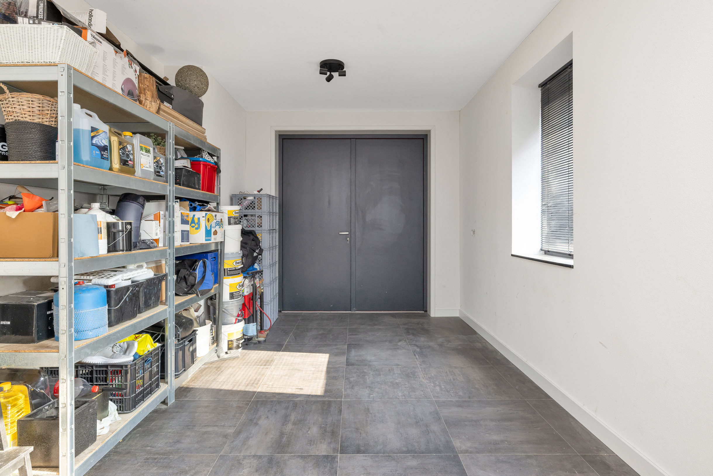 Via de berging is de volledig geïsoleerde garage bereikbaar.