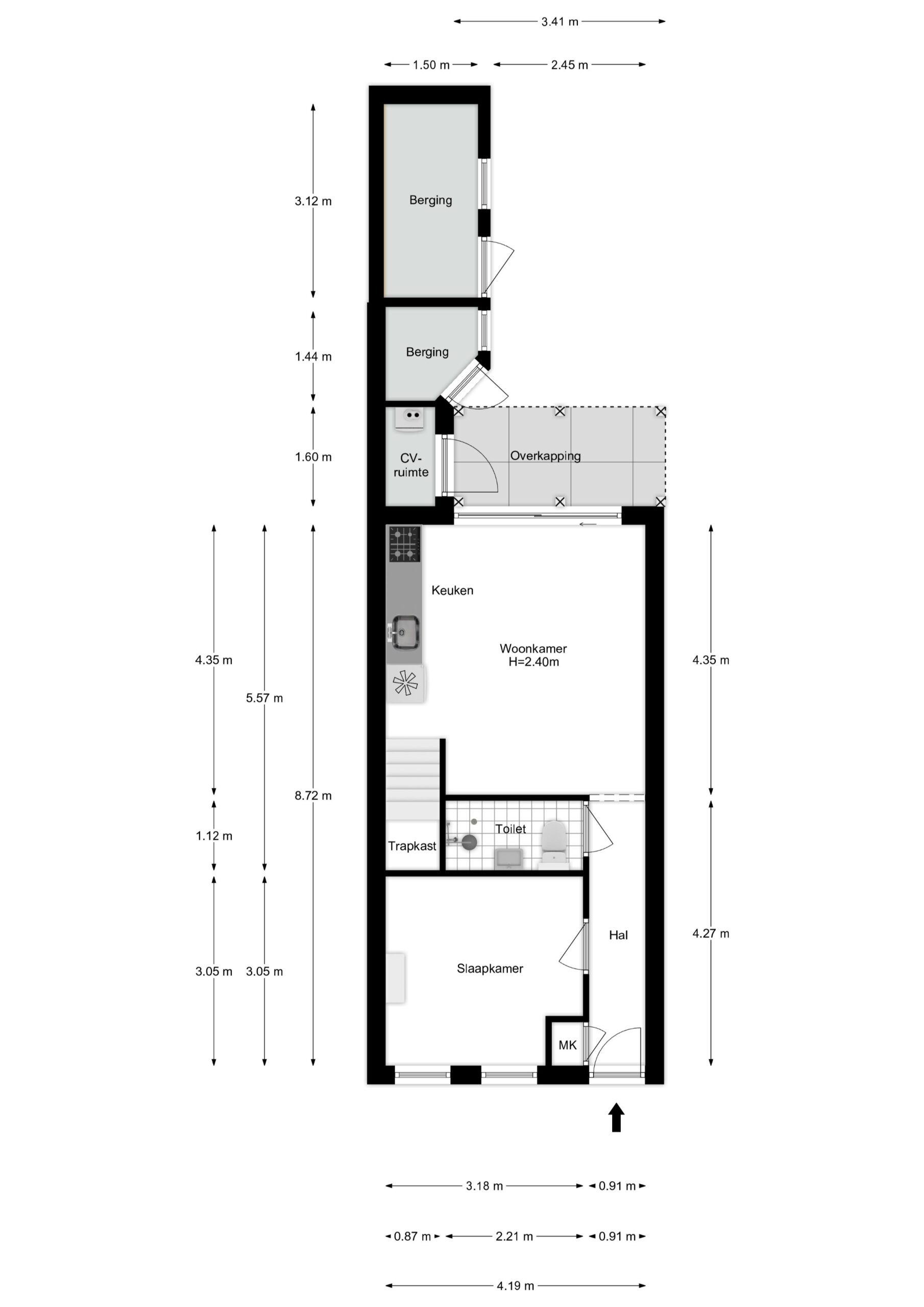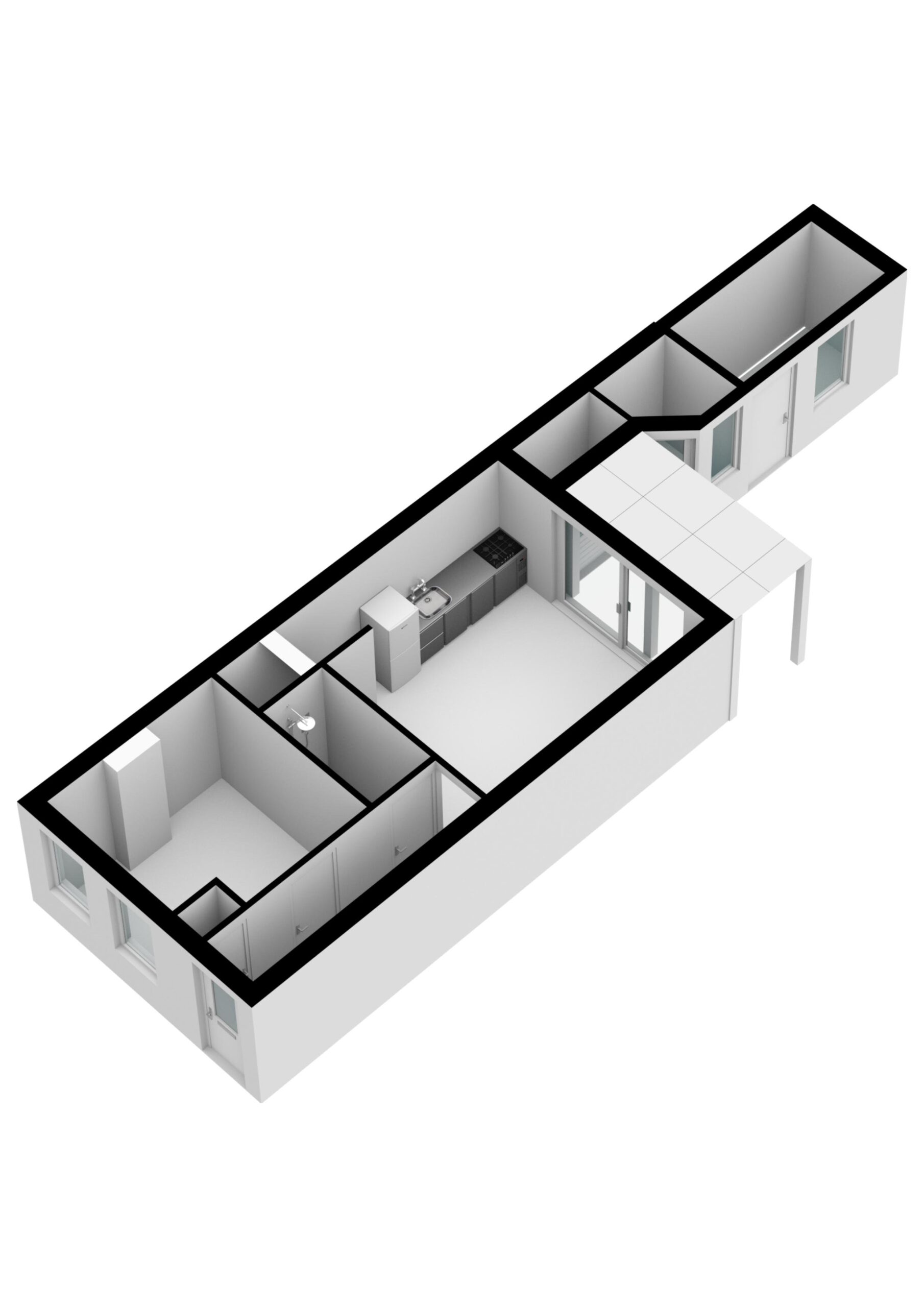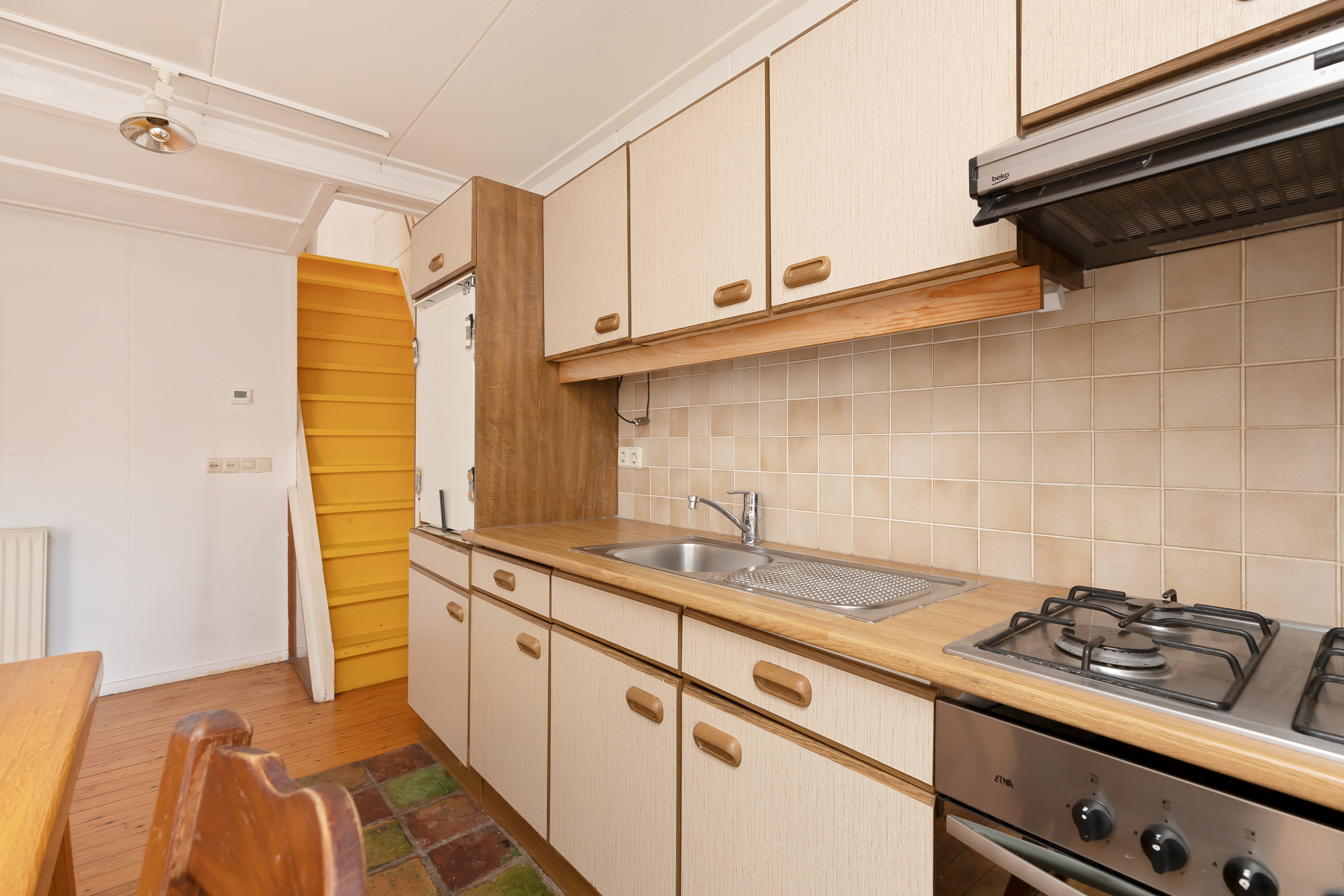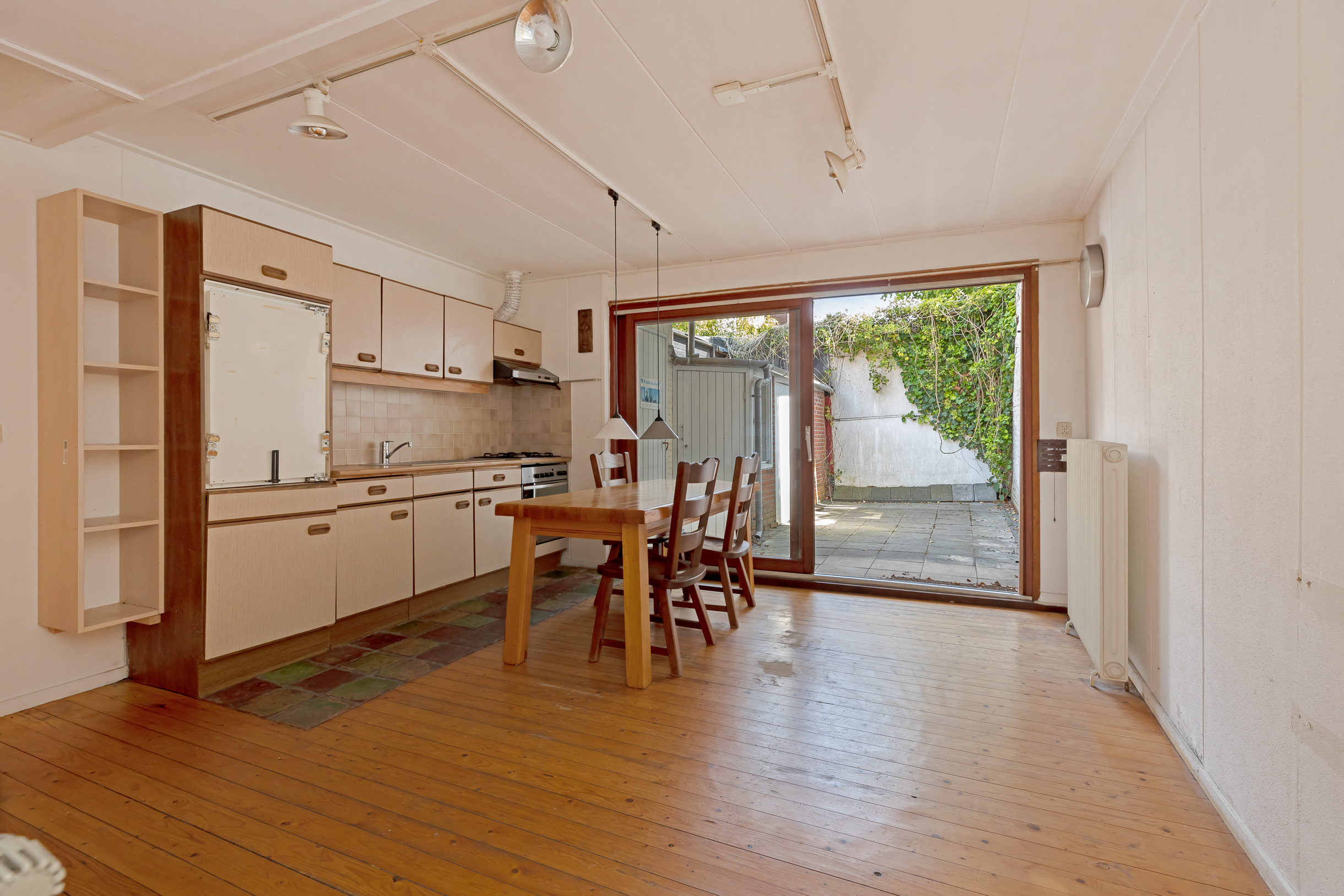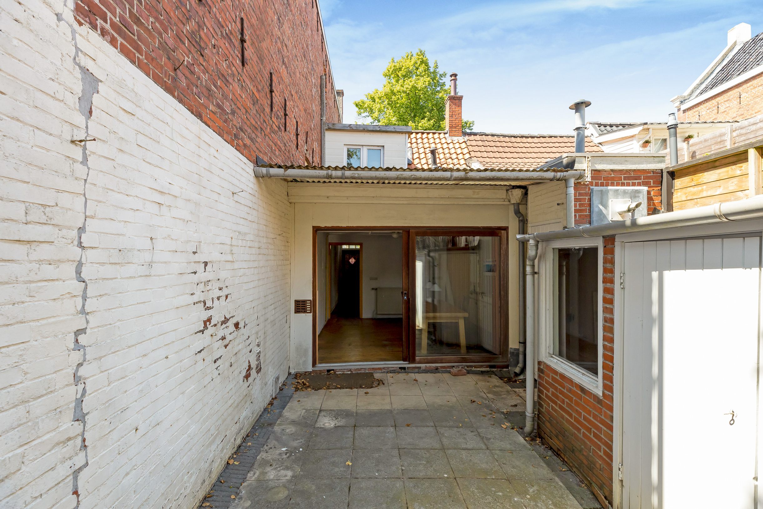 Je komt binnen via de entree en stapt zo de hal binnen welke toegang biedt tot de voorkamer (deze ruimte is prima te gebruiken als slaapkamer), badkamer en de achterkamer met open keuken. Via de achterkamer heb je toegang tot een knusse patiotuin met volop rust. Dus s ‘avonds lekker lang buiten zitten met vrienden behoort ook tot de mogelijkheden. Via de trap in de achterkamer kom je boven waar zich een slaapkamer bevindt.
