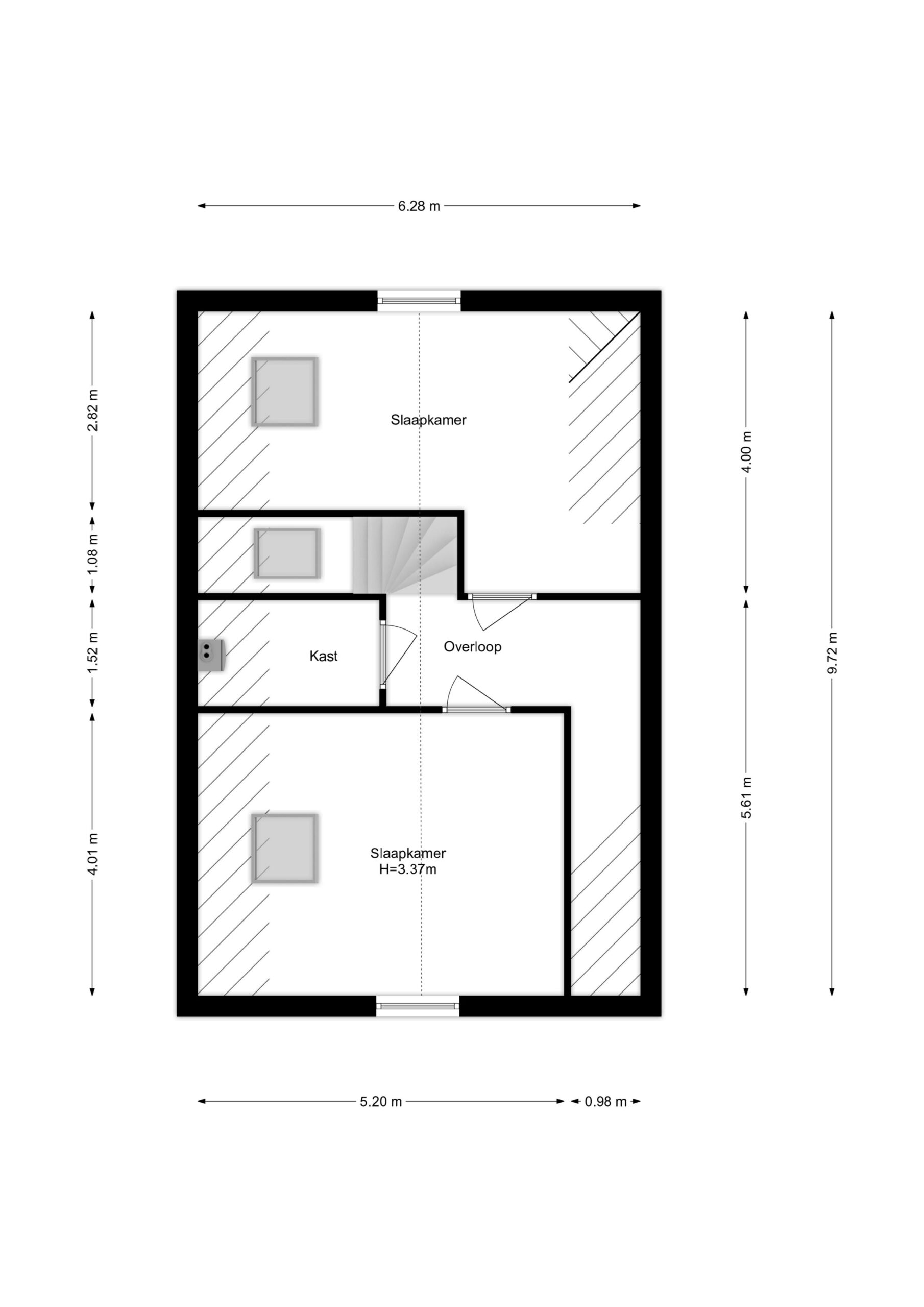 Op de 2 bovenverdiepingen bevinden zich 5 volwaardige slaapkamers en een keurige