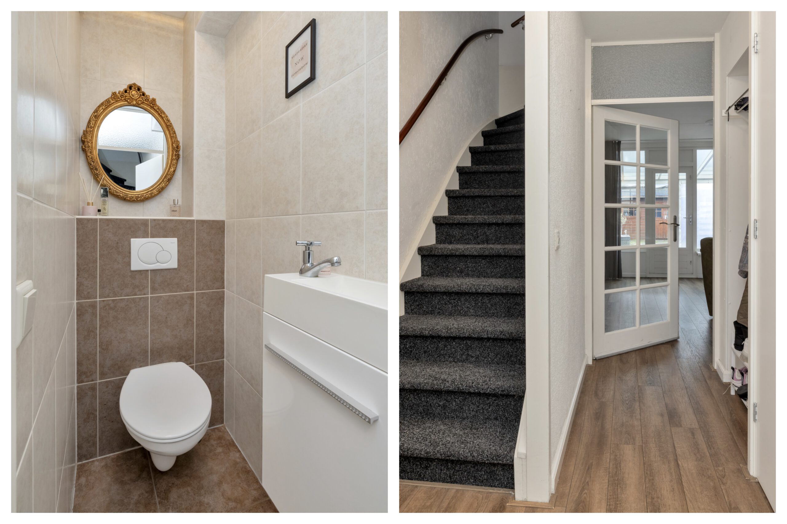 Via de entree aan de voorzijde kom je binnen in de hal met meterkast, toiletruimte en toegang tot de trapopgang. Vanuit de hal loop je door naar de ruime en lichte woonkamer, die dankzij de lengte van de woning prettig is in te delen met een zit- en eetgedeelte. Onder de trap bevindt zich een praktische trapkast voor extra bergruimte.