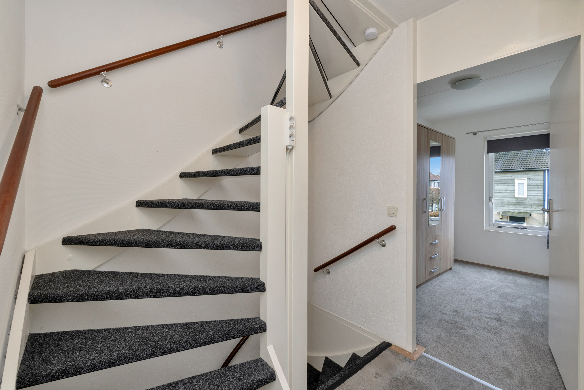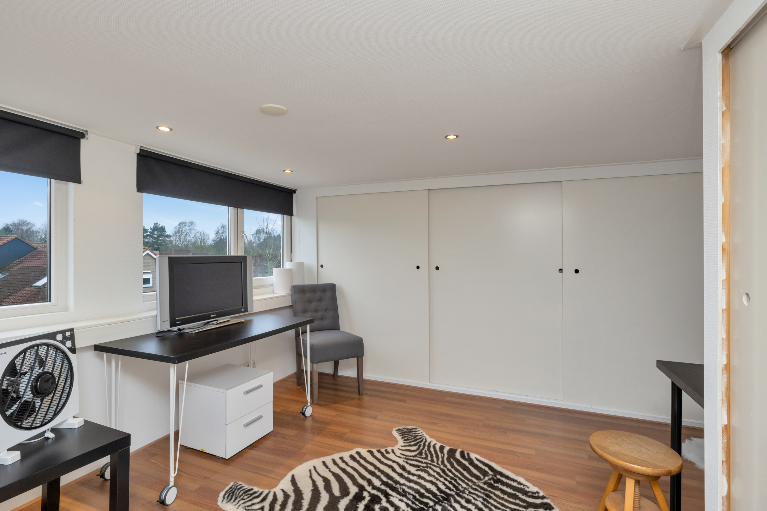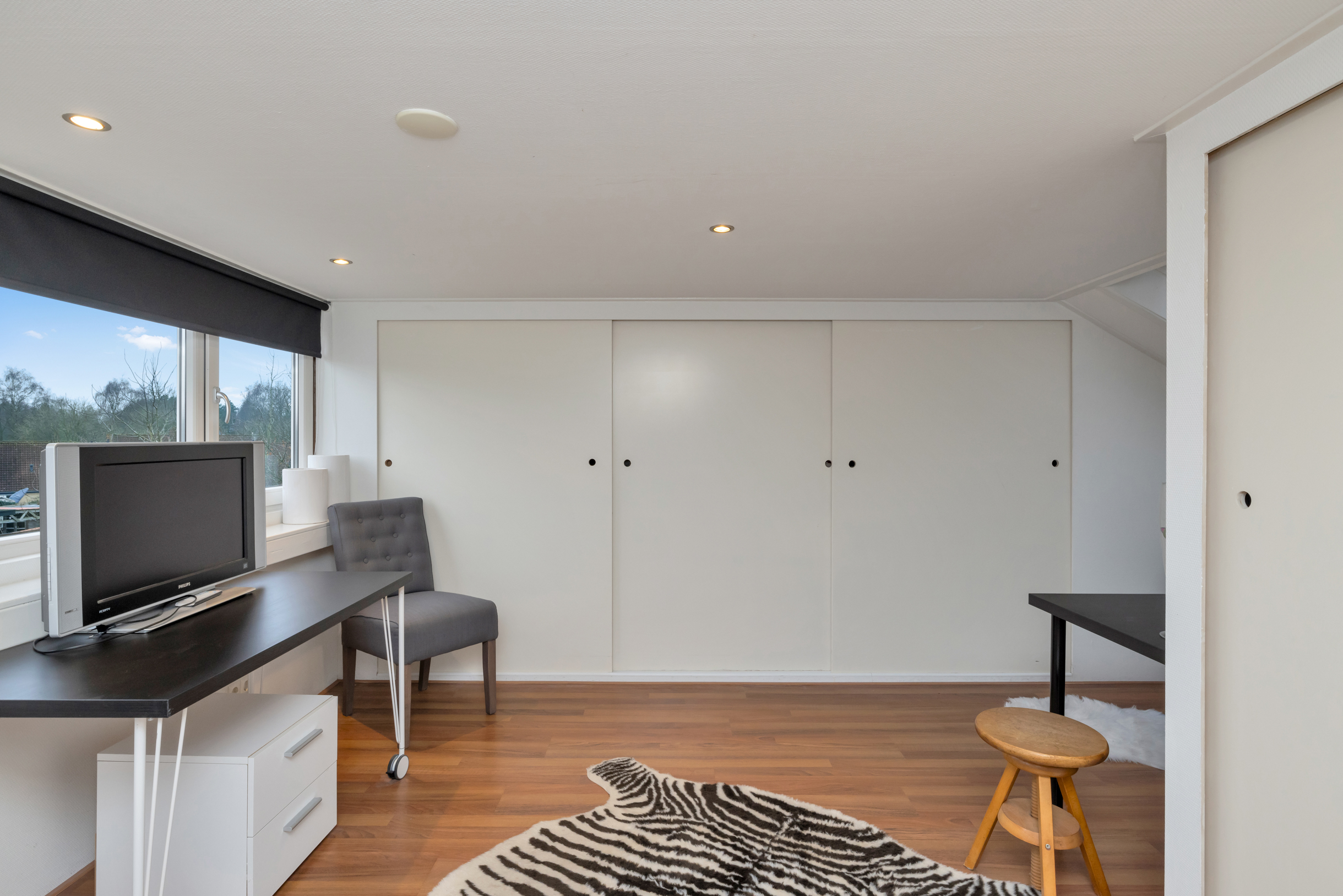 De verdieping beschikt over meerdere vaste kasten en bergruimte achter de knieschotten, wat zorgt voor praktische opbergmogelijkheden. Door de slimme indeling en de goede lichtinval is deze verdieping optimaal benut en vormt zij een waardevolle aanvulling op de woonruimte.