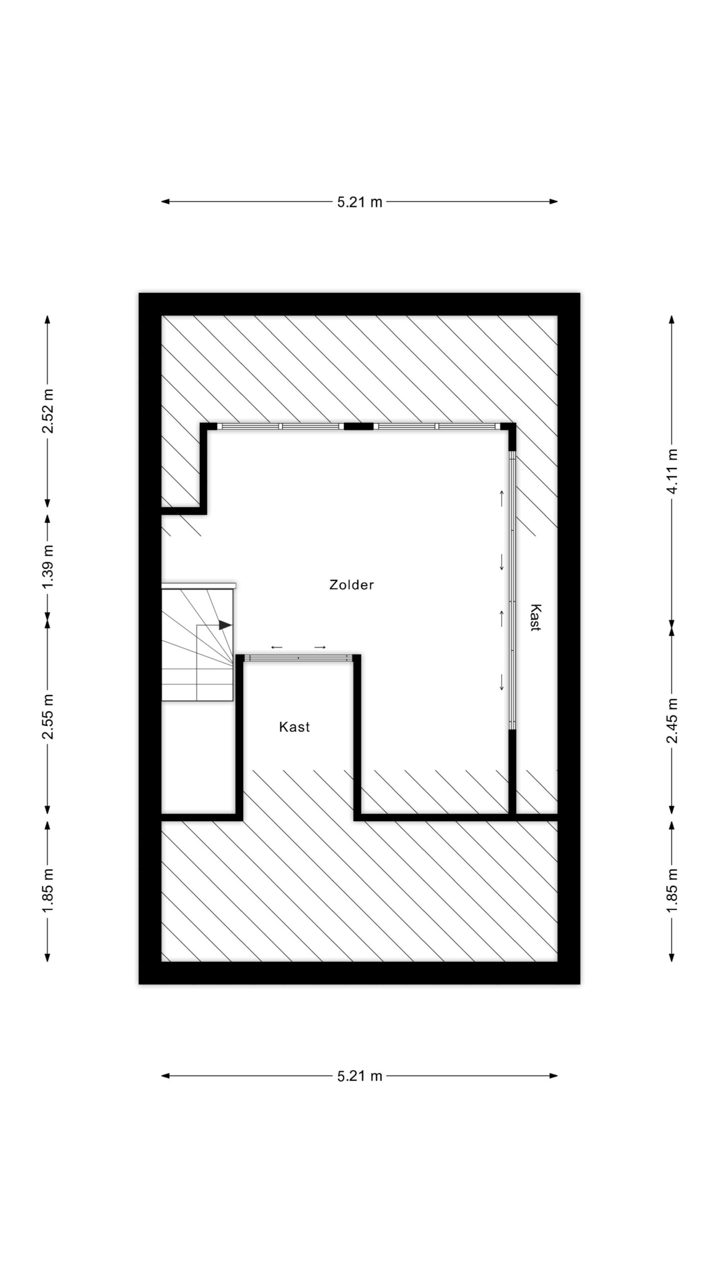 Via een vaste trap bereik je de tweede verdieping, waar zich een ruime zolderverdieping bevindt. Dankzij de dakkapel is hier een volwaardige en lichte ruimte ontstaan, die uitstekend geschikt is als extra slaapkamer, werkruimte of hobbykamer.