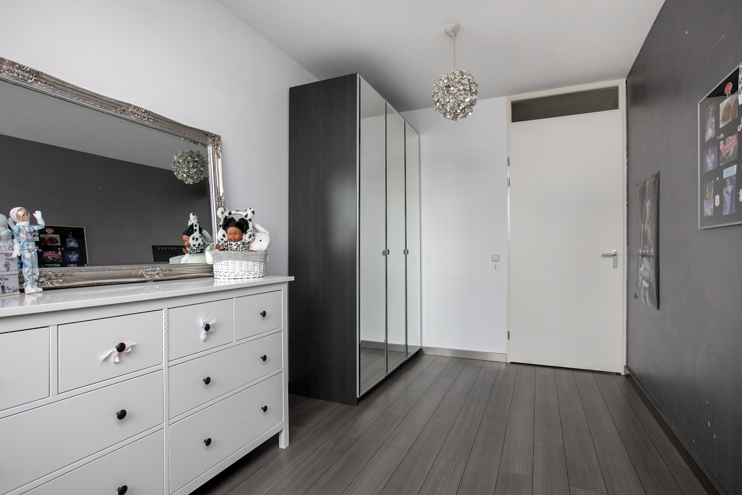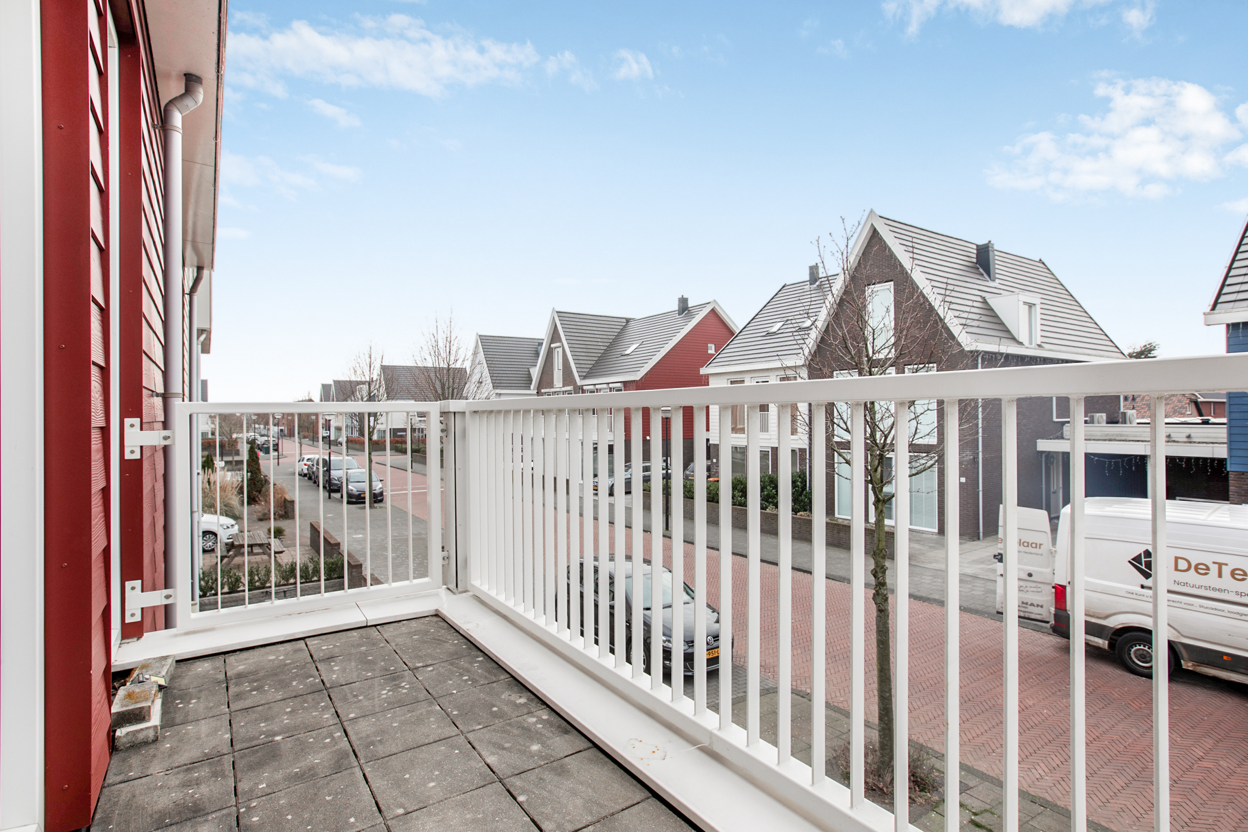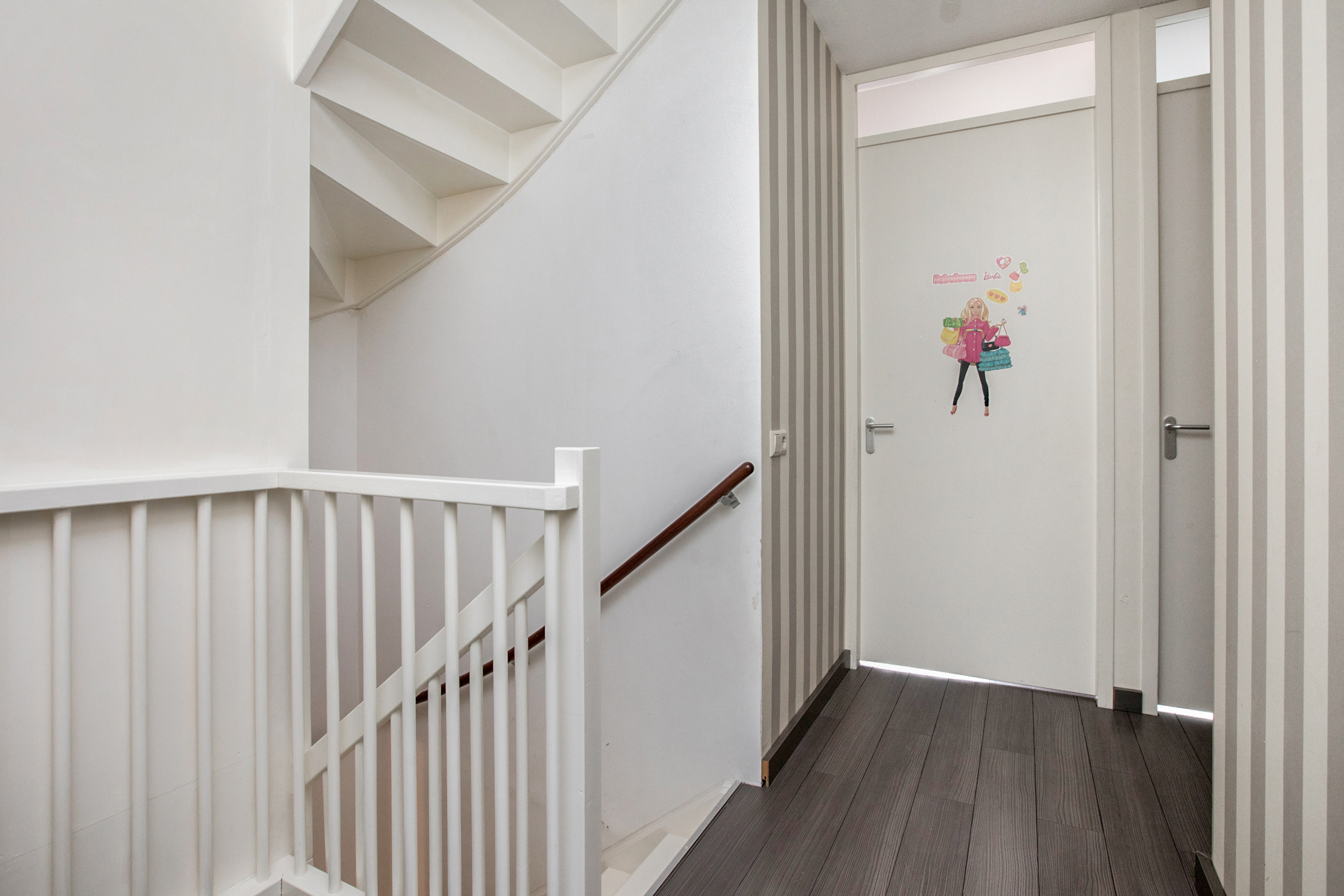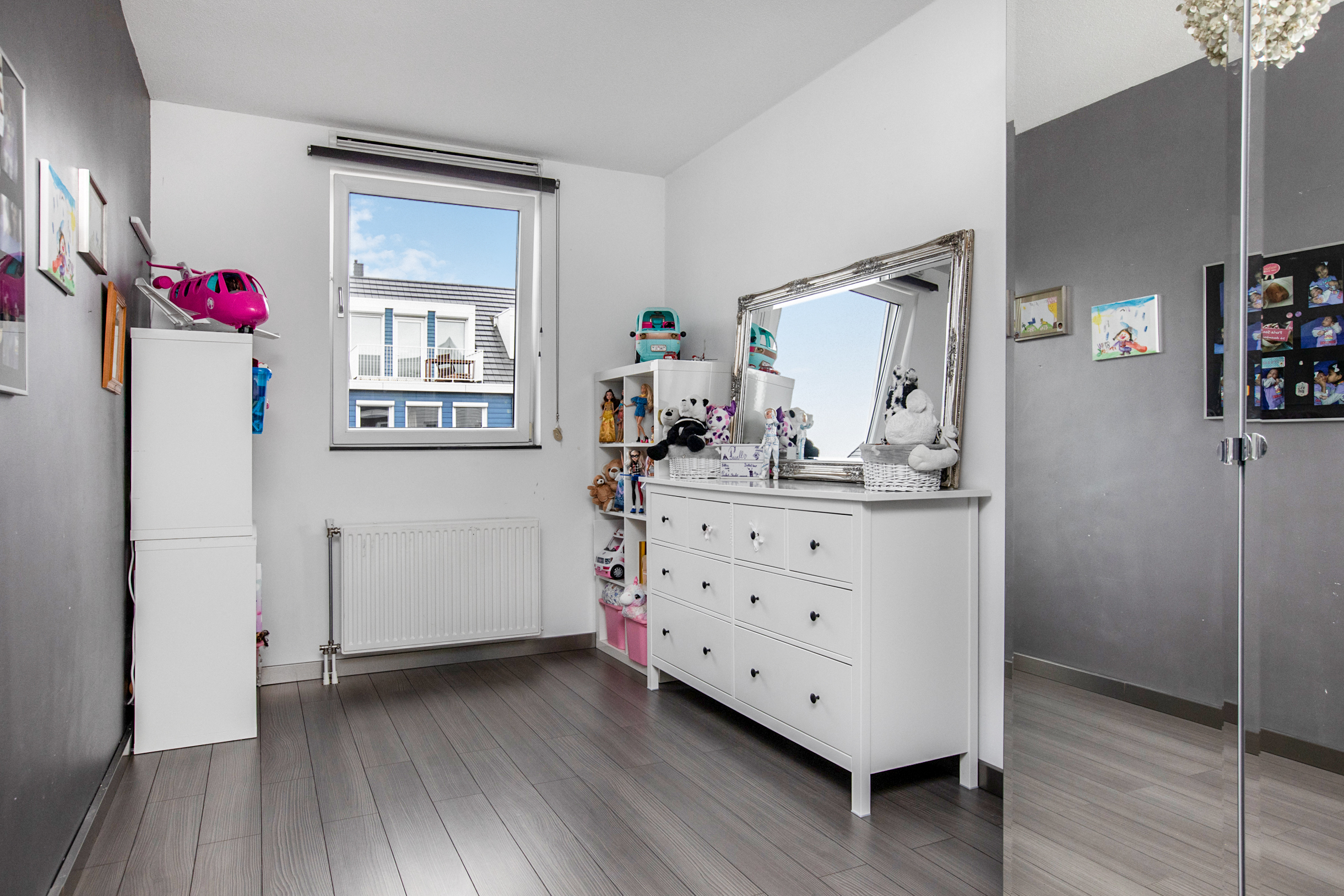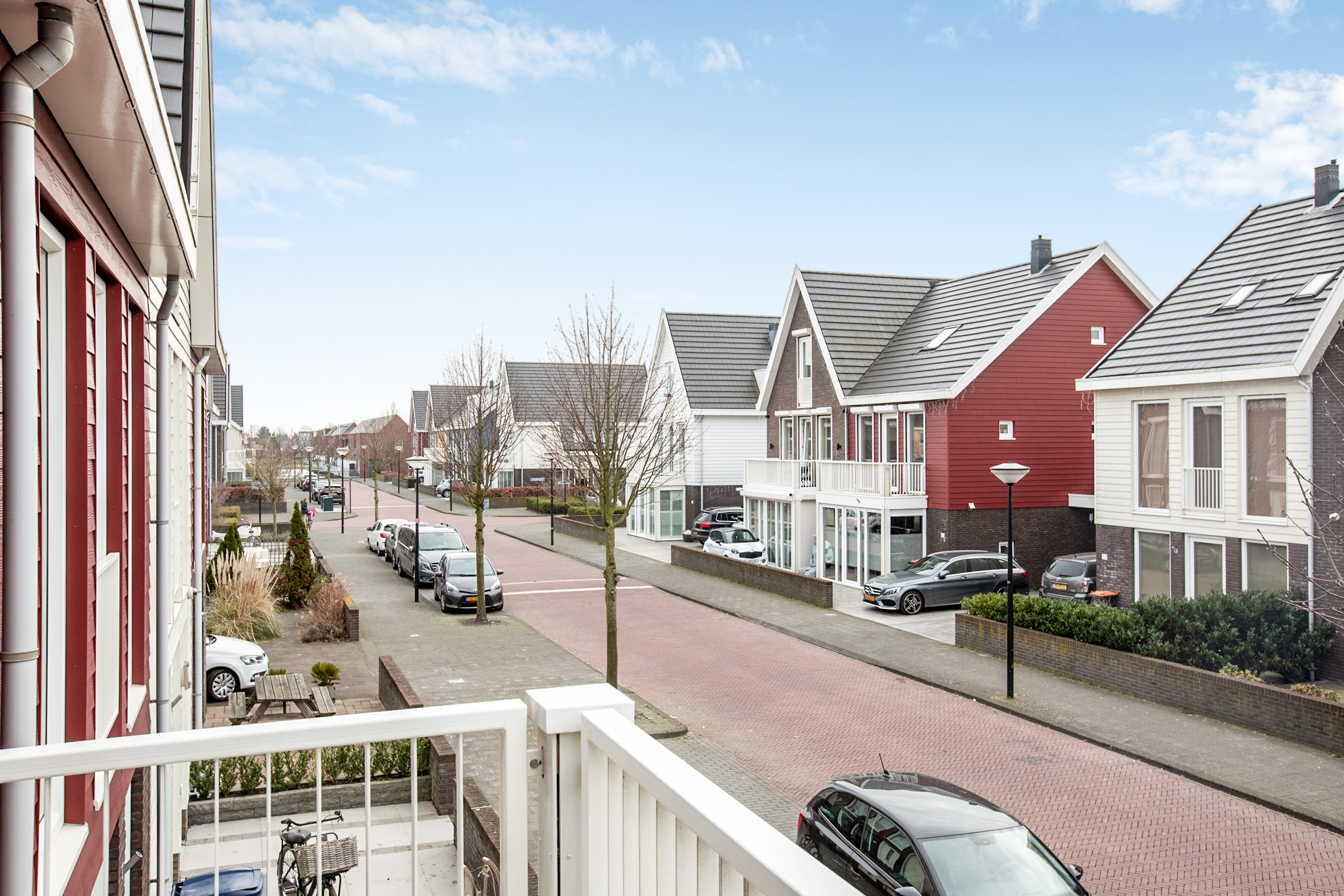 Net als in de woonkamer, is er ook op de eerste verdieping sprake van een 1,2 meter grote uitbouw. Op deze verdieping vind je de badkamer, separaat toilet en 3 slaapkamers, waarvan de grootste slaapkamer voorzien is van zowel een inloopkast als een groot balkon. Deze kamer bevindt zich aan de voorzijde van de woning.