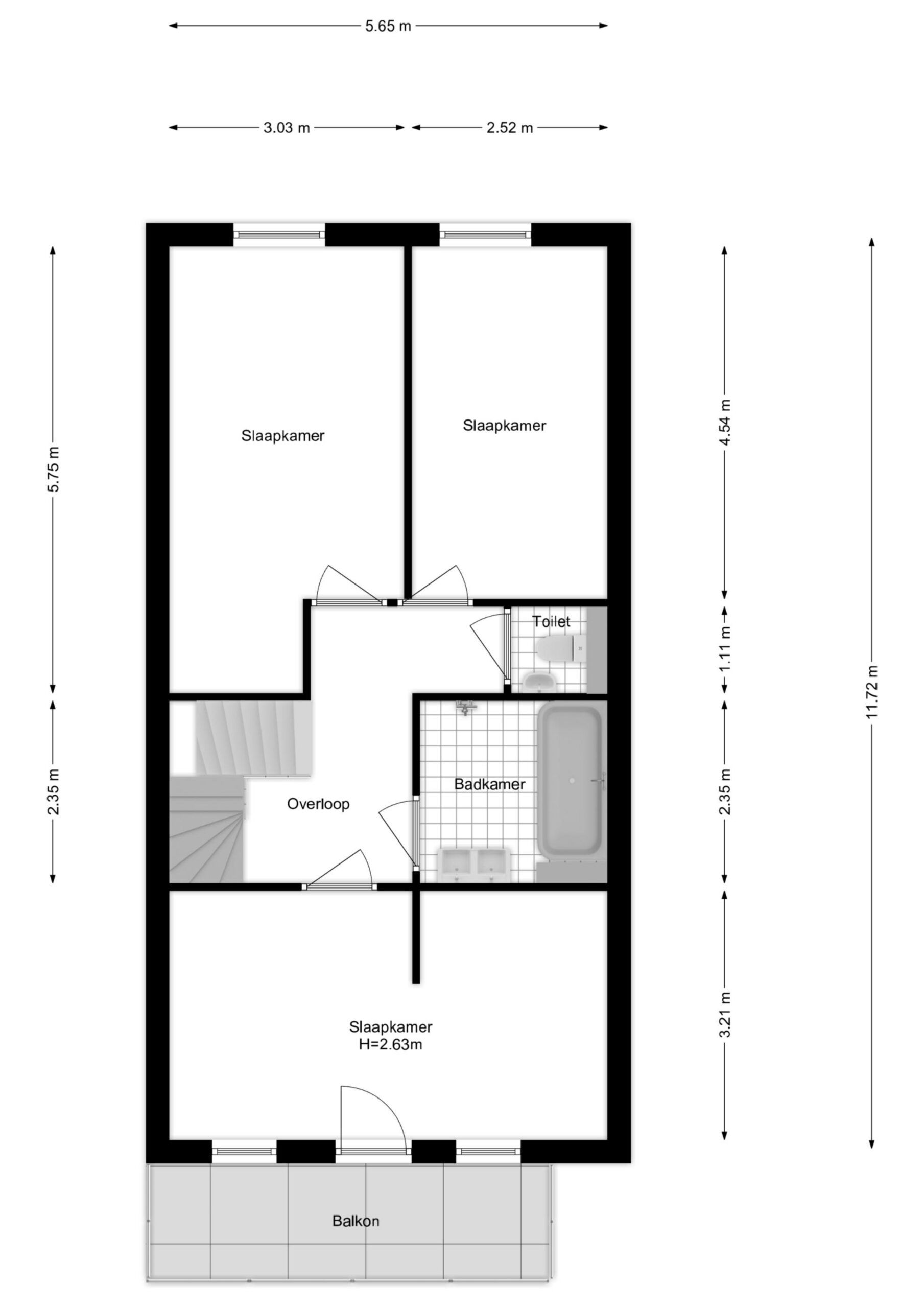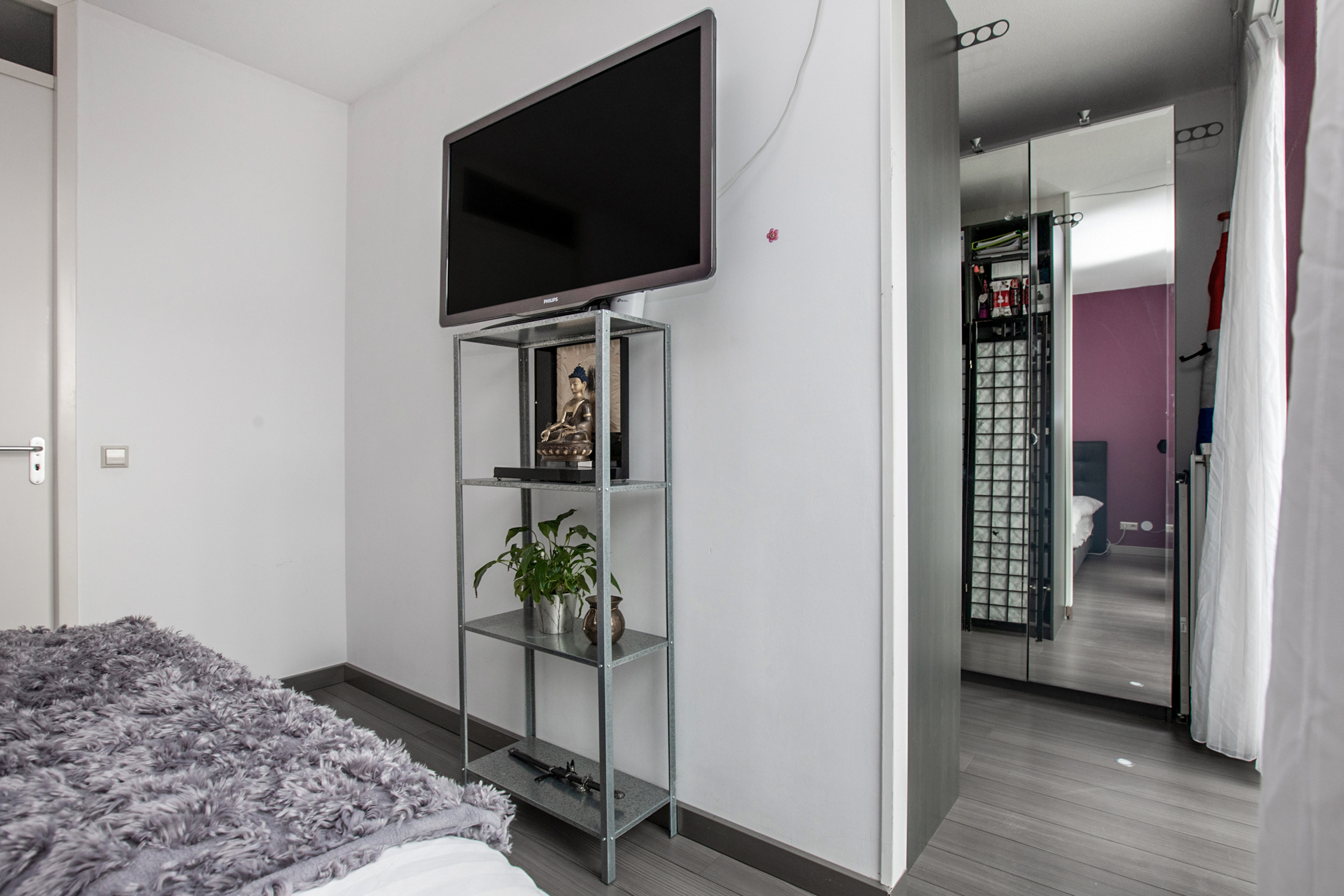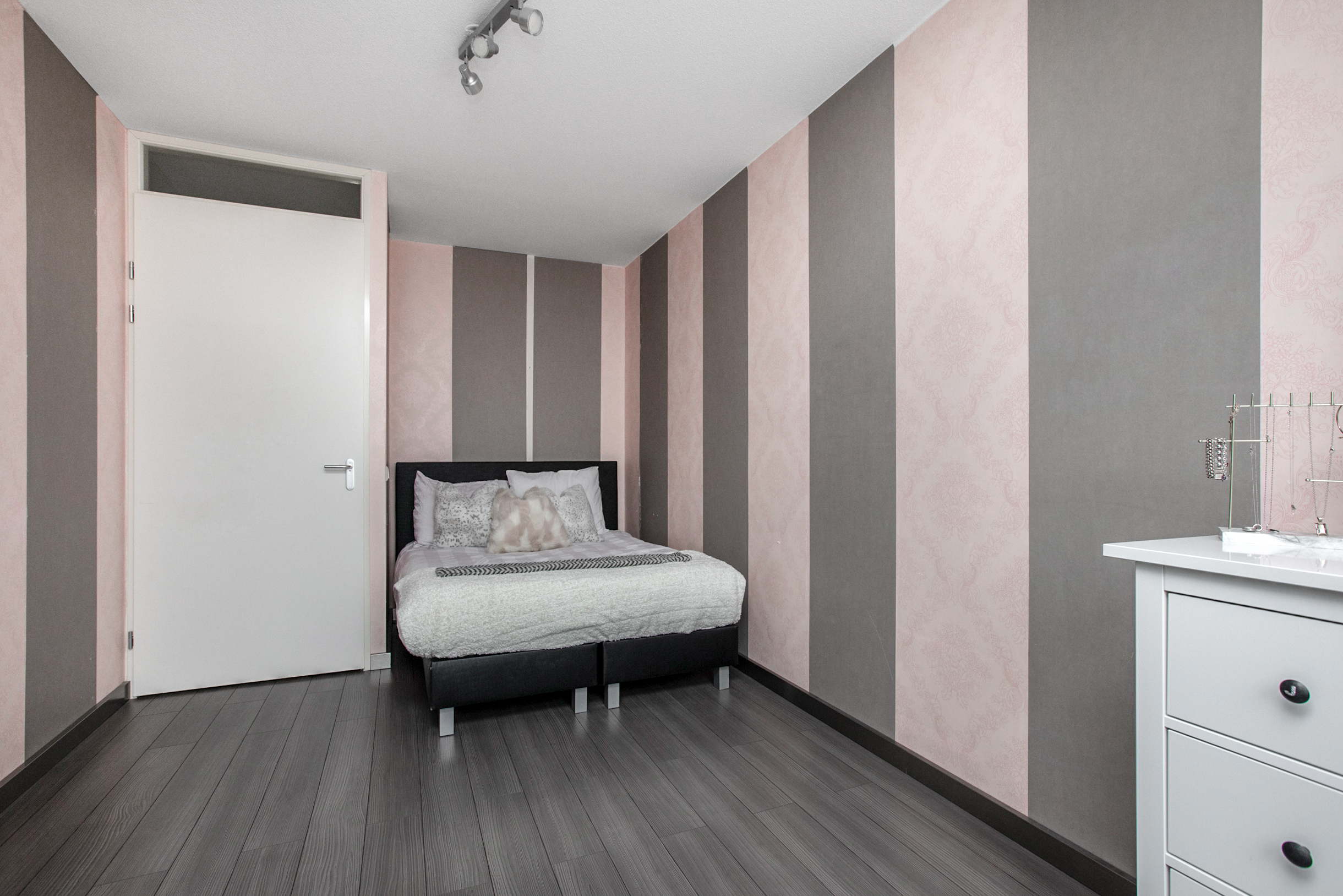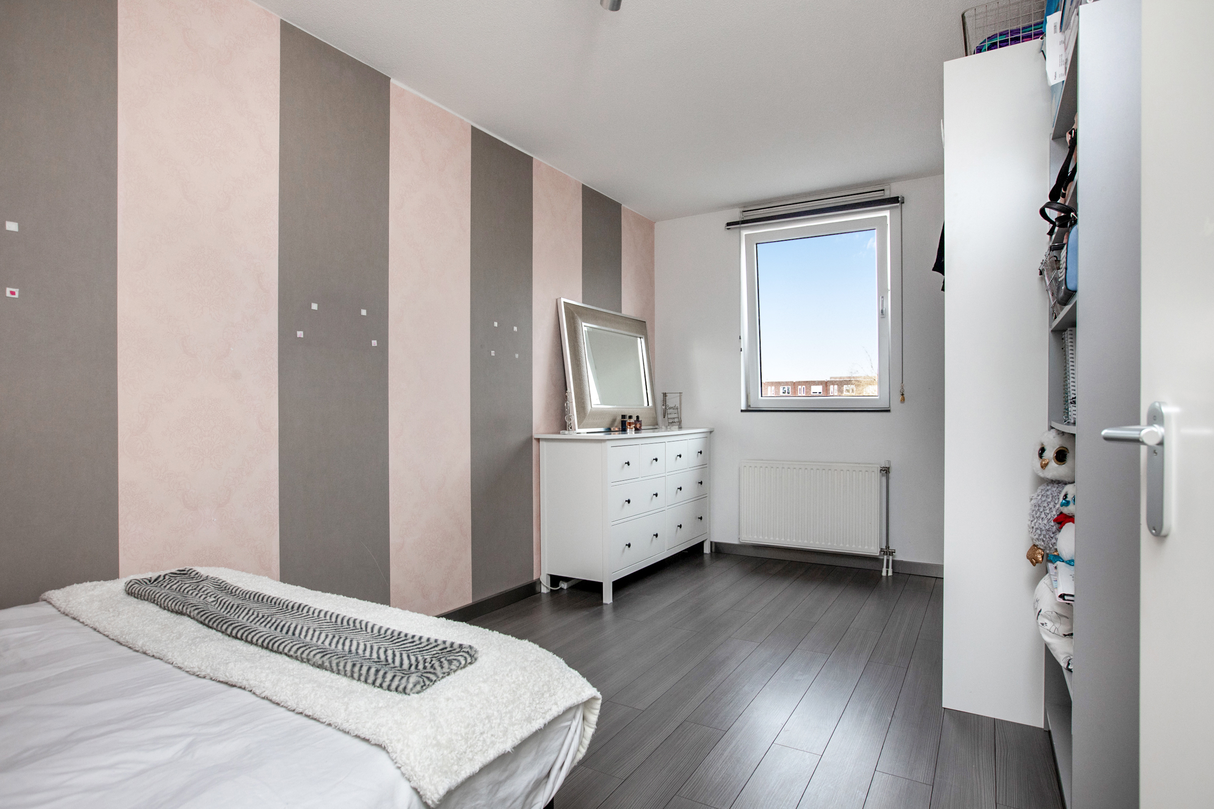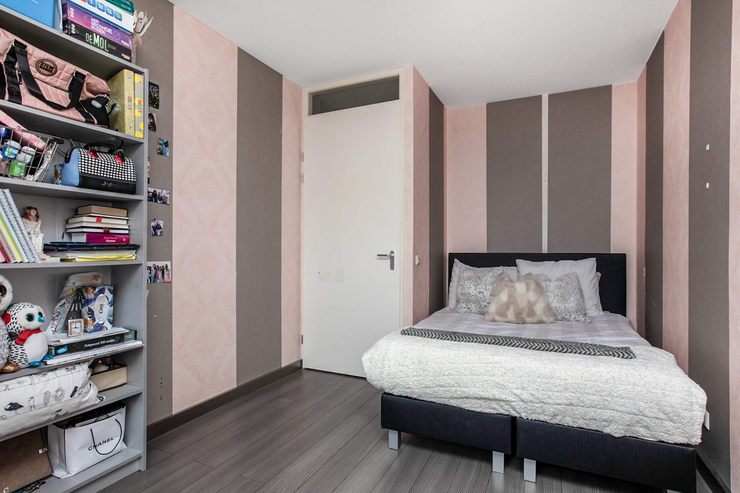 Net als in de woonkamer, is er ook op de eerste verdieping sprake van een 1,2 meter grote uitbouw. Op deze verdieping vind je de badkamer, separaat toilet en 3 slaapkamers, waarvan de grootste slaapkamer voorzien is van zowel een inloopkast als een groot balkon. Deze kamer bevindt zich aan de voorzijde van de woning.