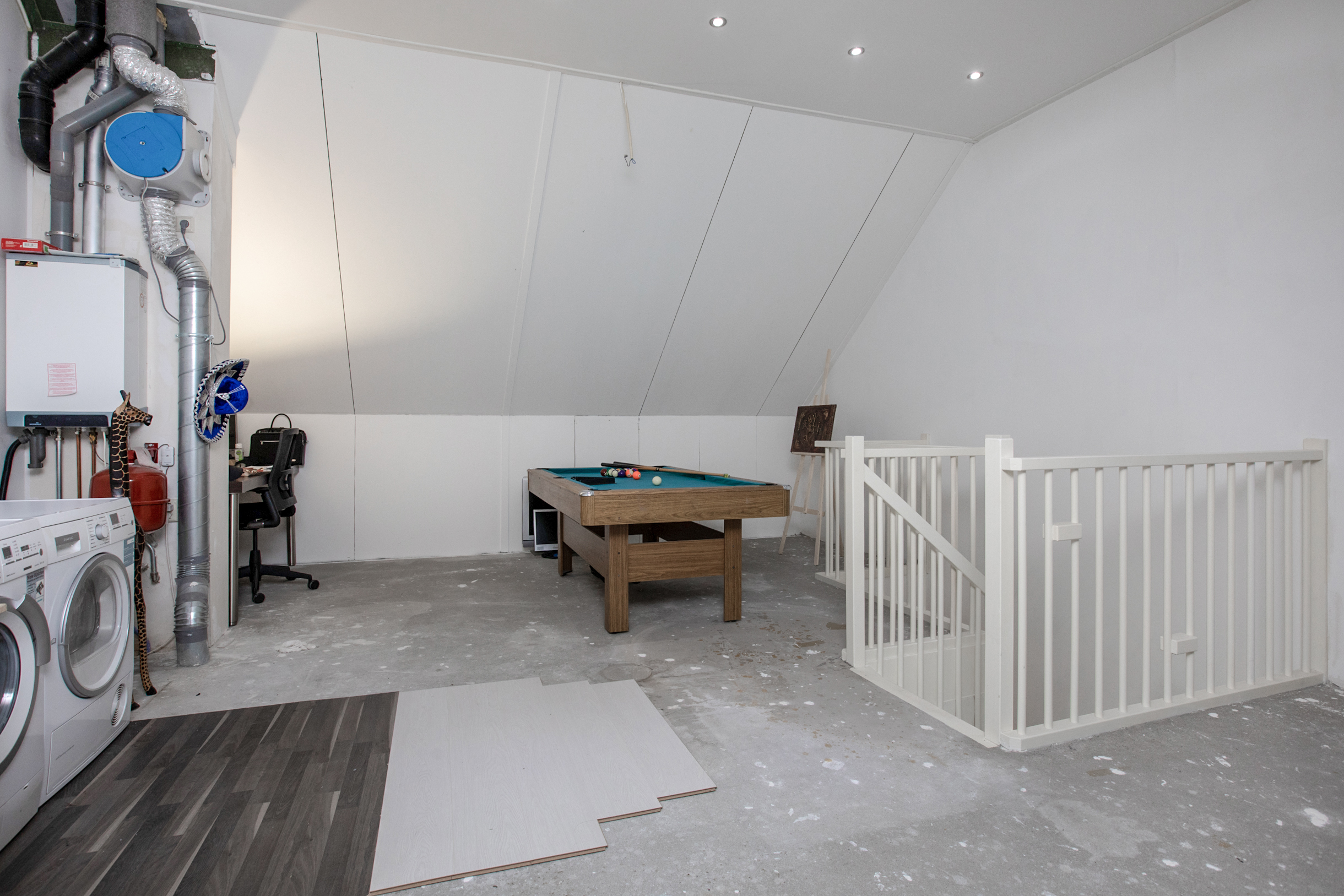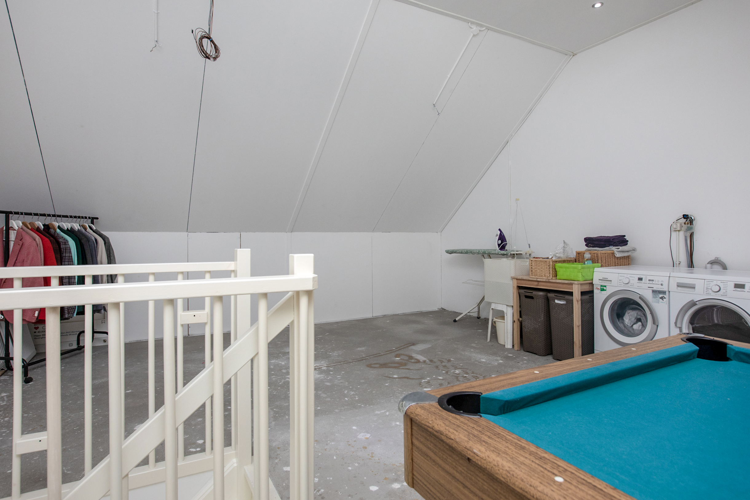 Middels de vaste trap bereik je de zolder. Dit is één grote open ruimte, waar tevens de aansluiting zit voor wasmachine en droger. Deze ruimte kan je omtoveren tot een 4e slaapkamer.