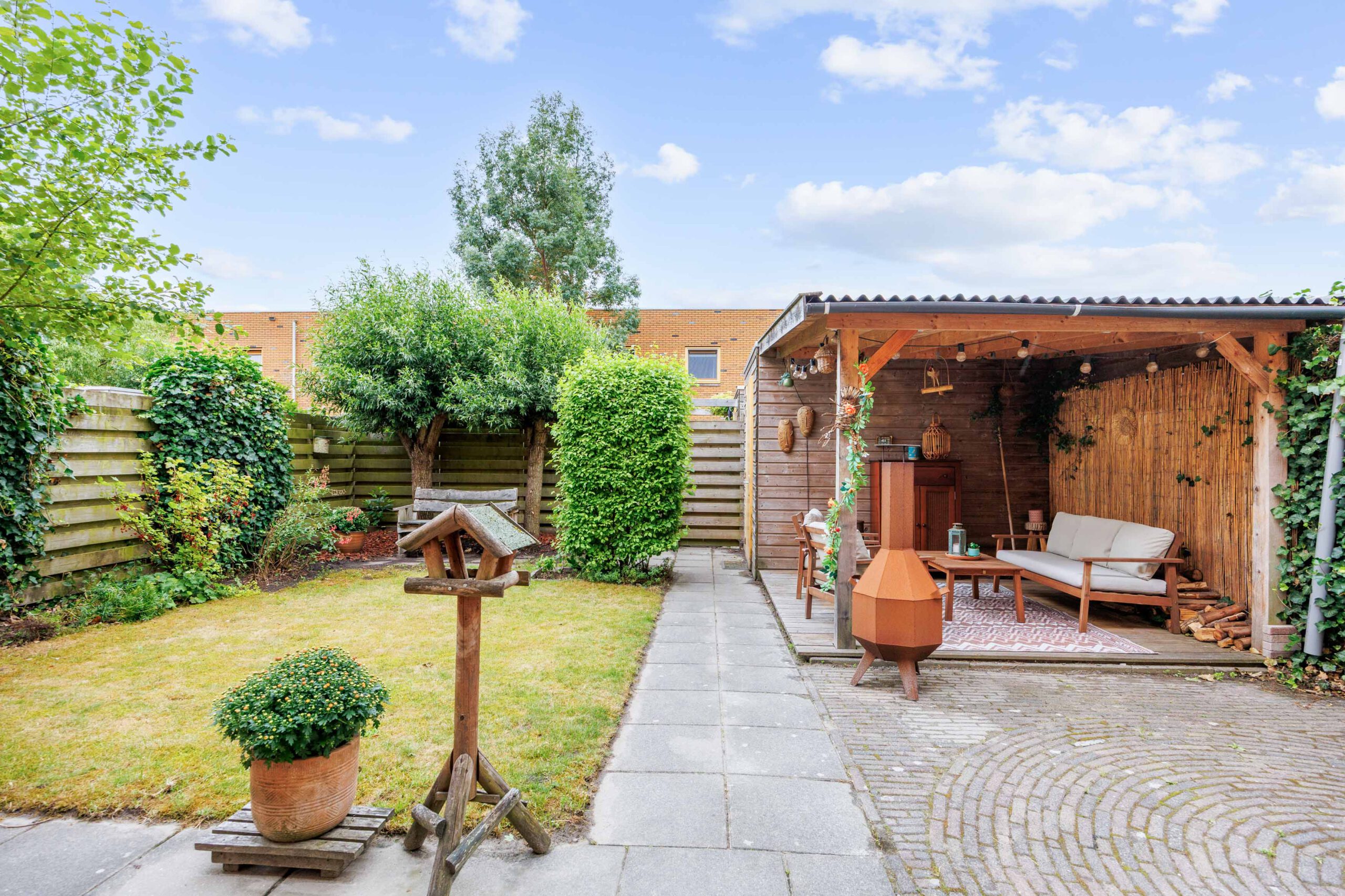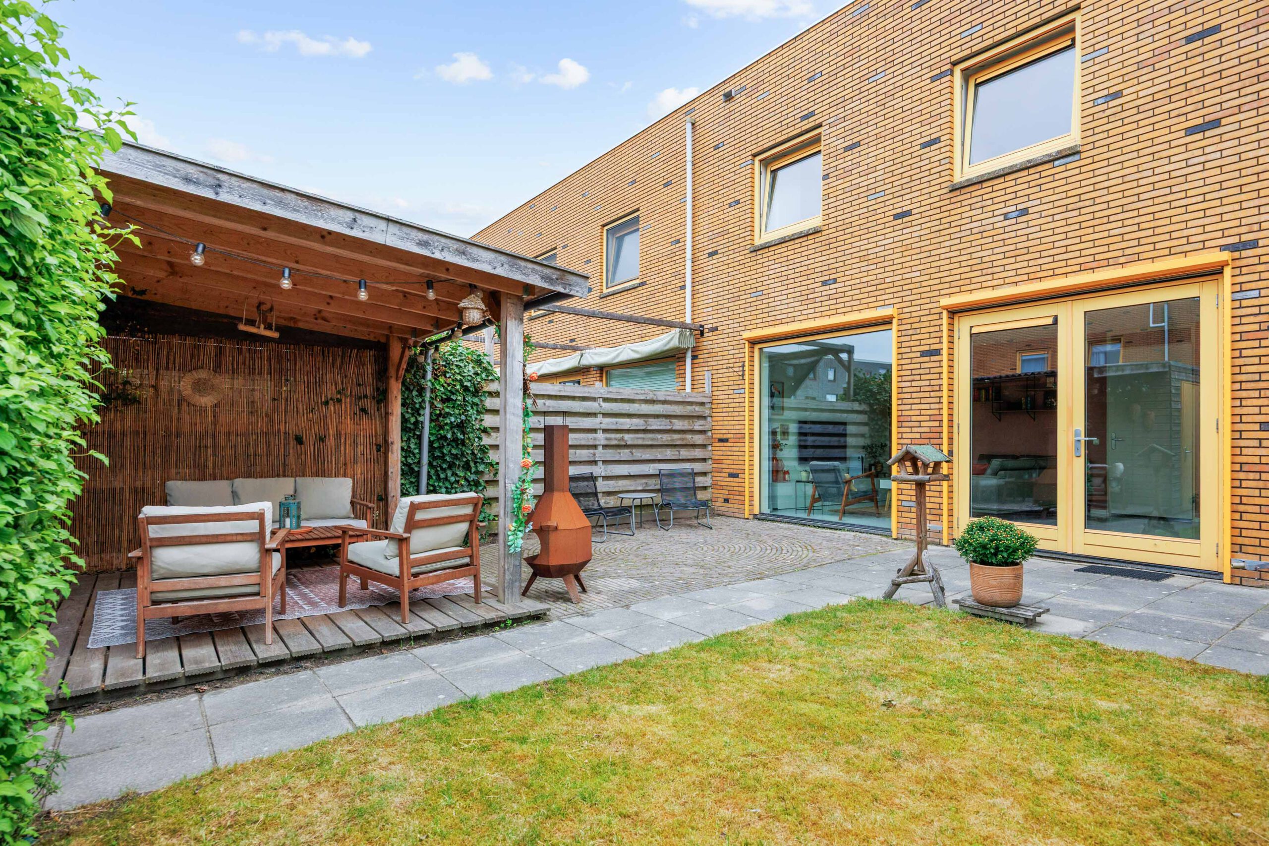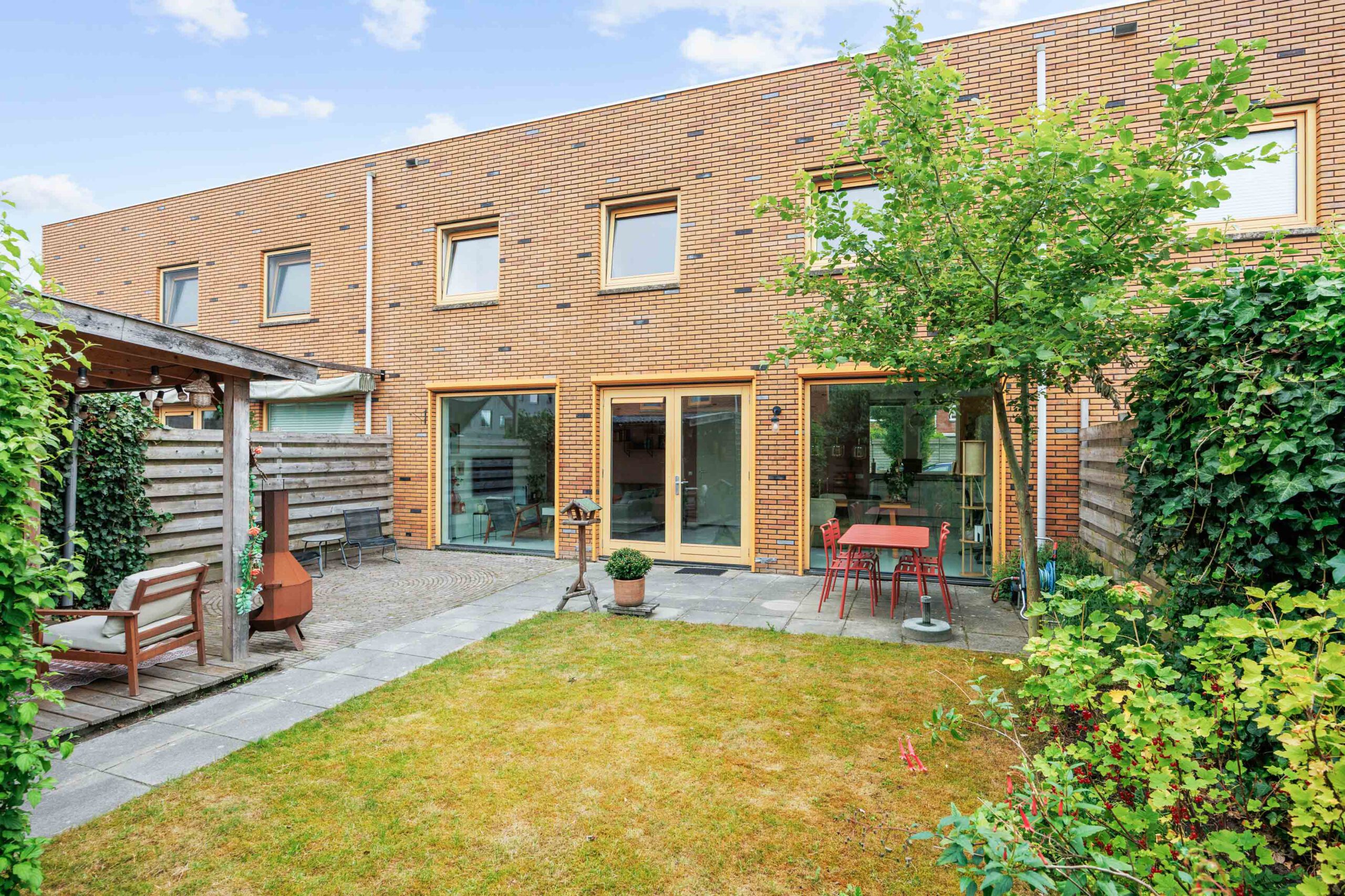 De ruime achtertuin is keurig aangelegd en biedt volop privacy, zon en ruimte voor ontspanning. Dankzij de ligging is het hier heerlijk vertoeven op mooie dagen. Ook de voortuin is verzorgd en geeft het huis een prettige, open uitstraling.