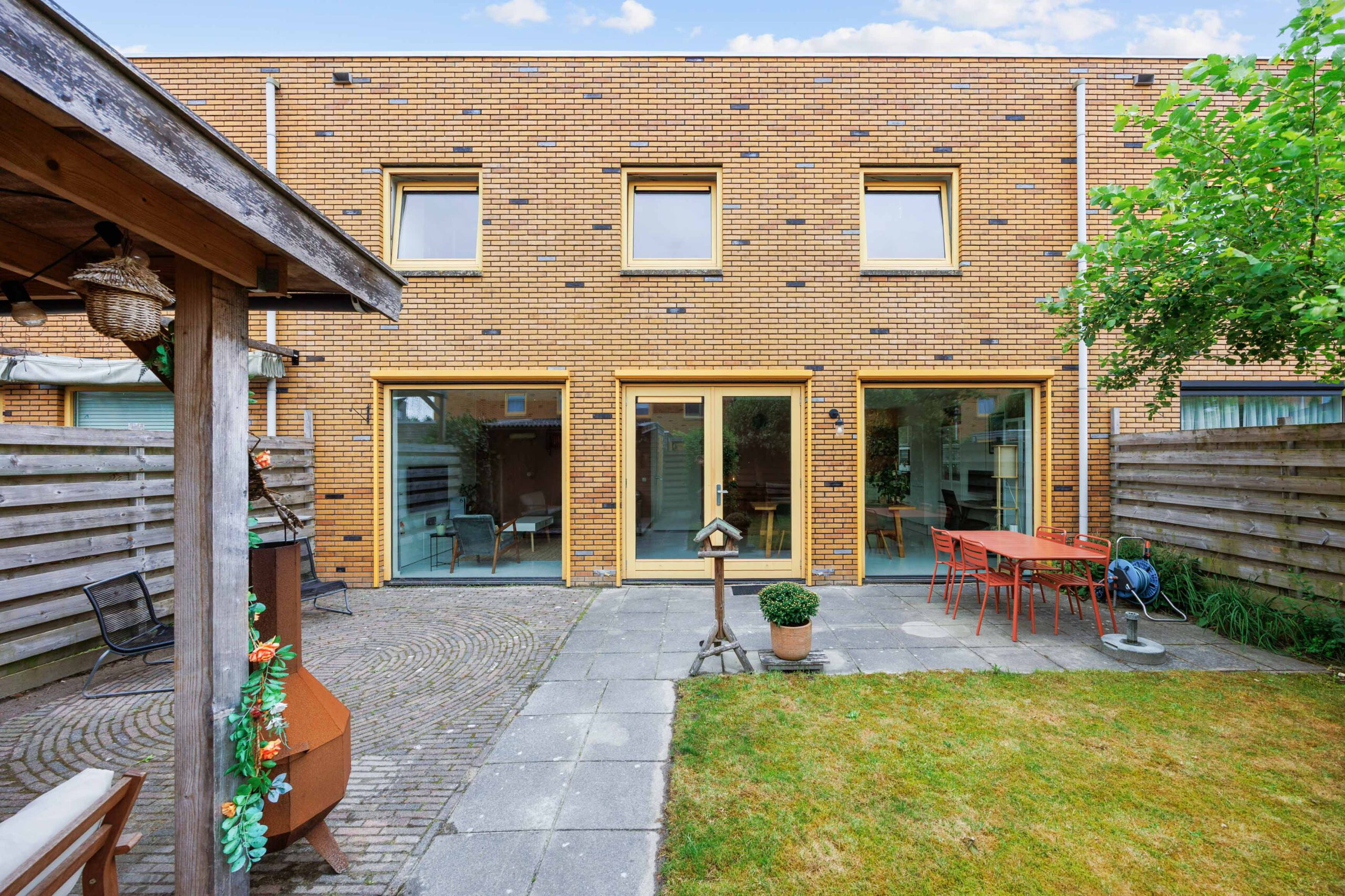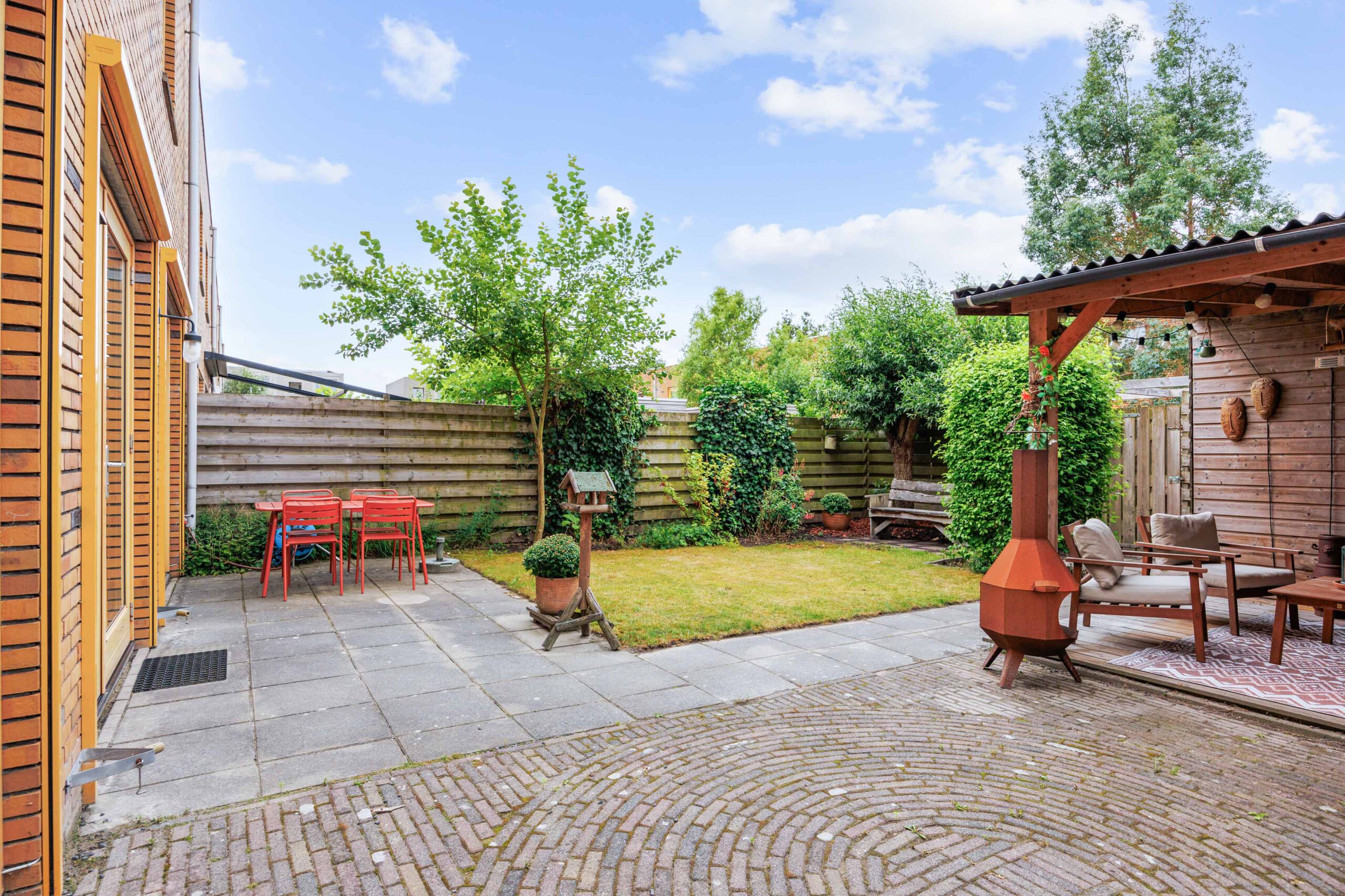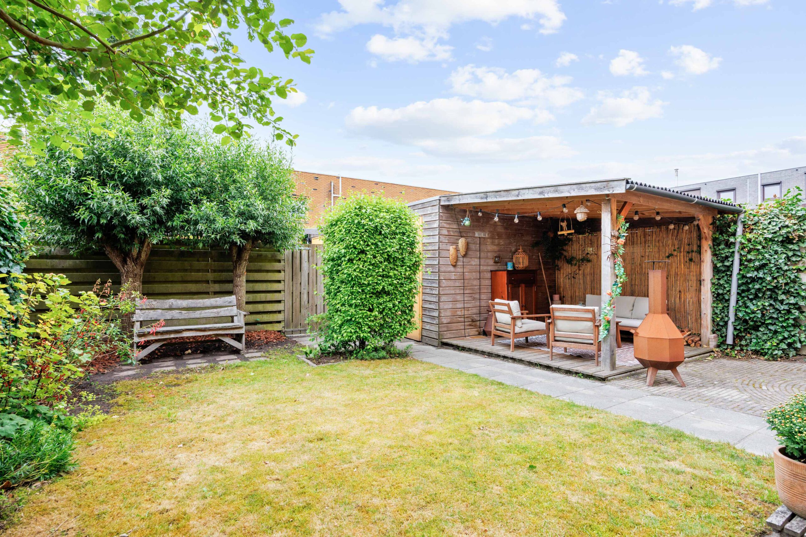 De ruime achtertuin is keurig aangelegd en biedt volop privacy, zon en ruimte voor ontspanning. Dankzij de ligging is het hier heerlijk vertoeven op mooie dagen. Ook de voortuin is verzorgd en geeft het huis een prettige, open uitstraling.